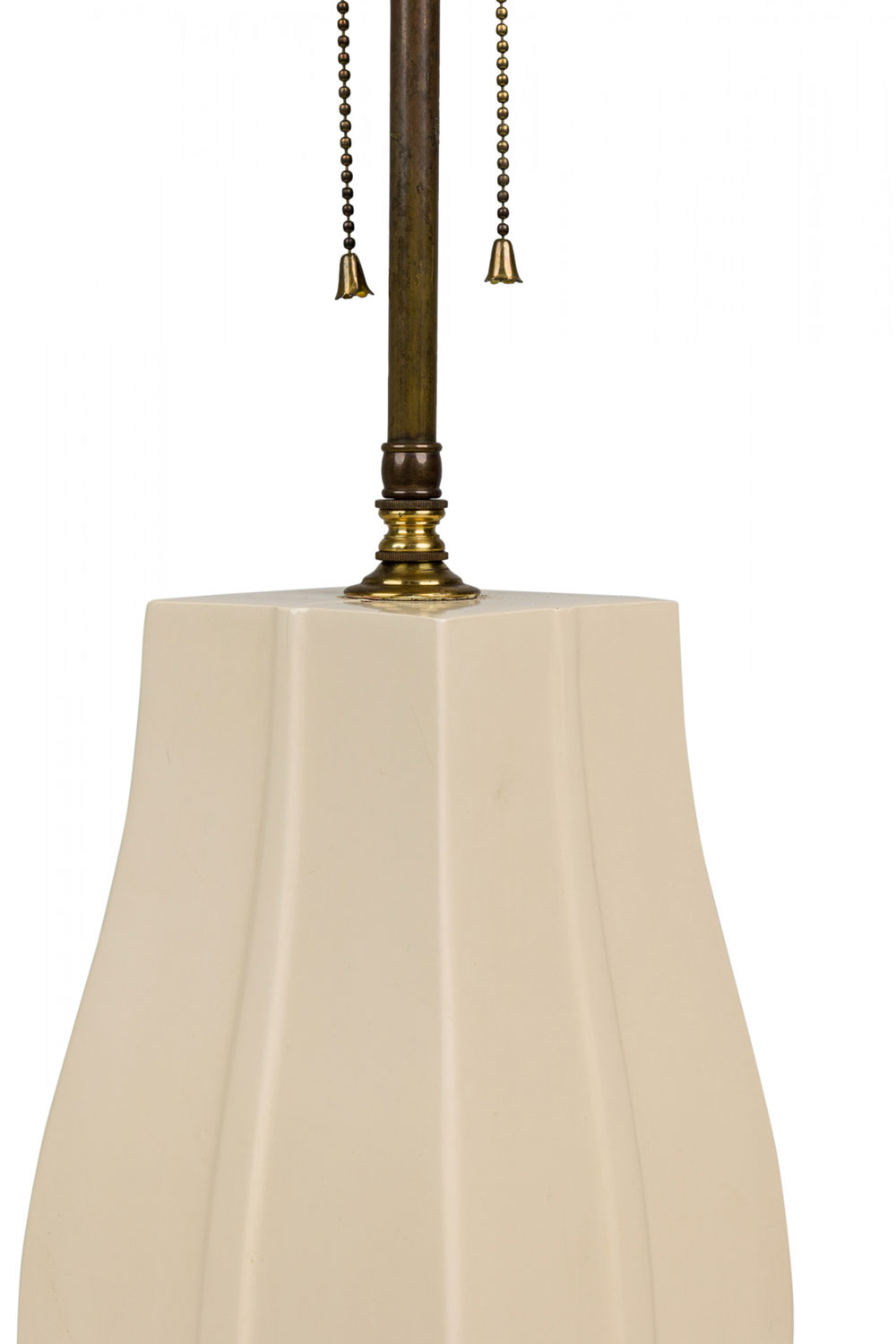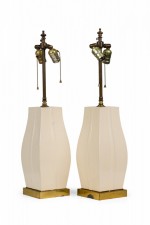 Pair of Mid-Century American White Lacquer Bombe Form Table Lamps on Brass Bases