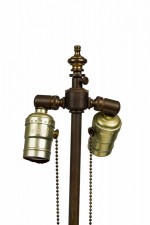 Style: Mid-Century Materials & Techniques: Brass, lacquered, metal, painted, wood Category: Lighting Condition: Felt worn on bottoms. Electrics working. Ships without shades. Good; Wear consistent with age and use
