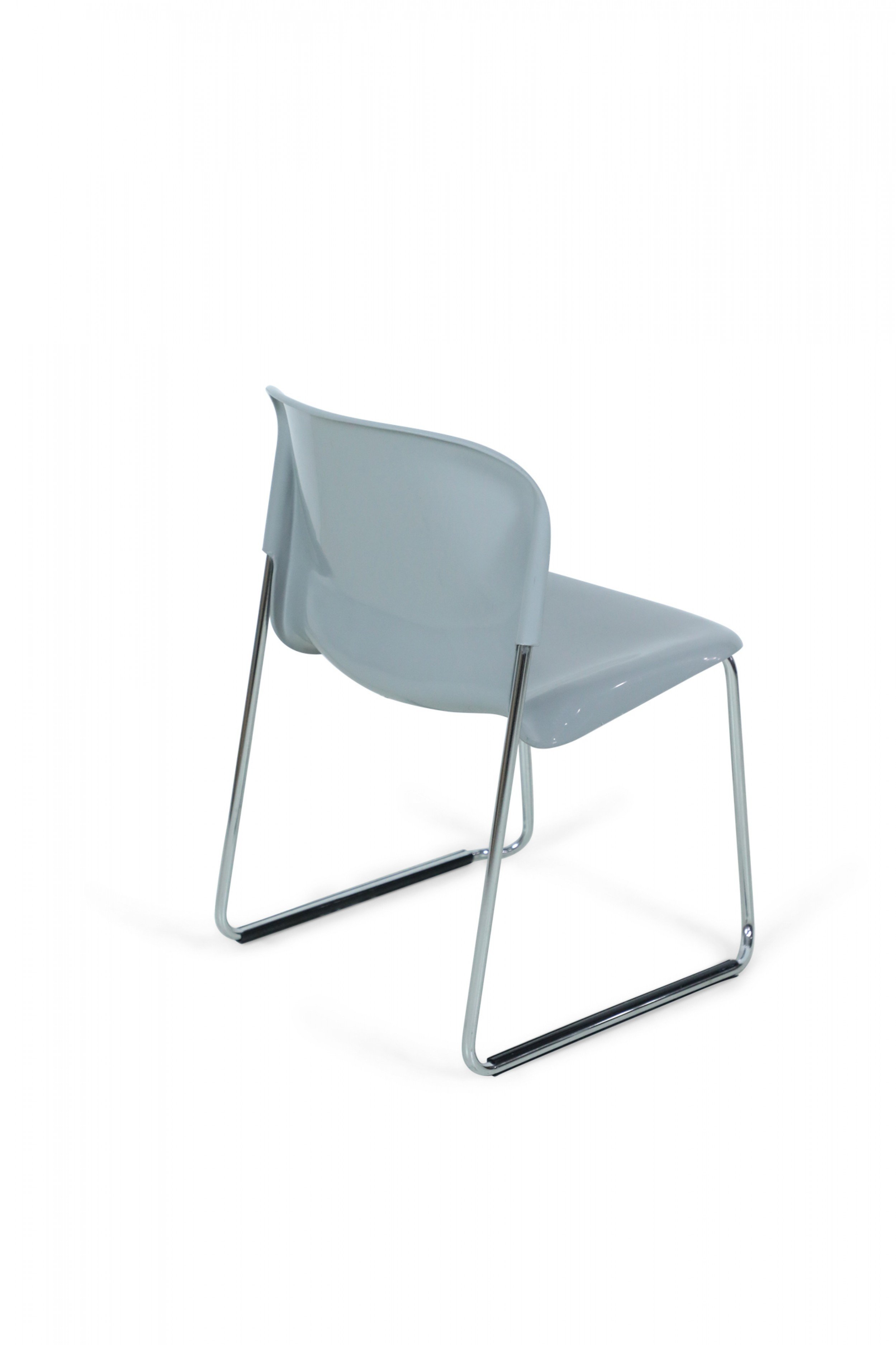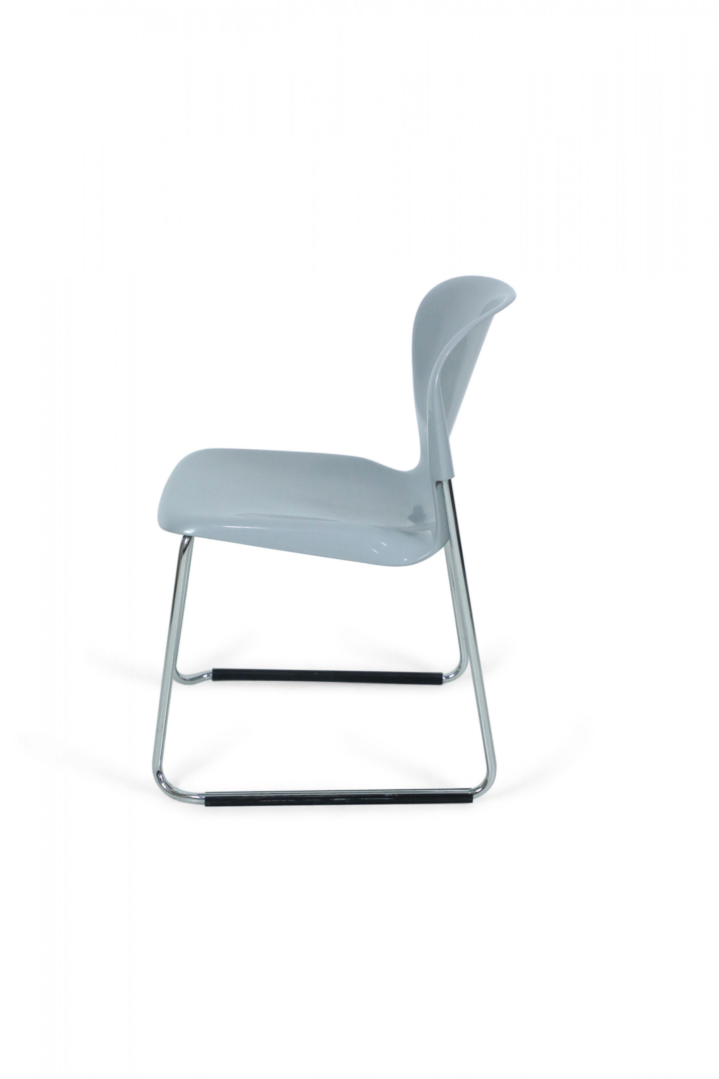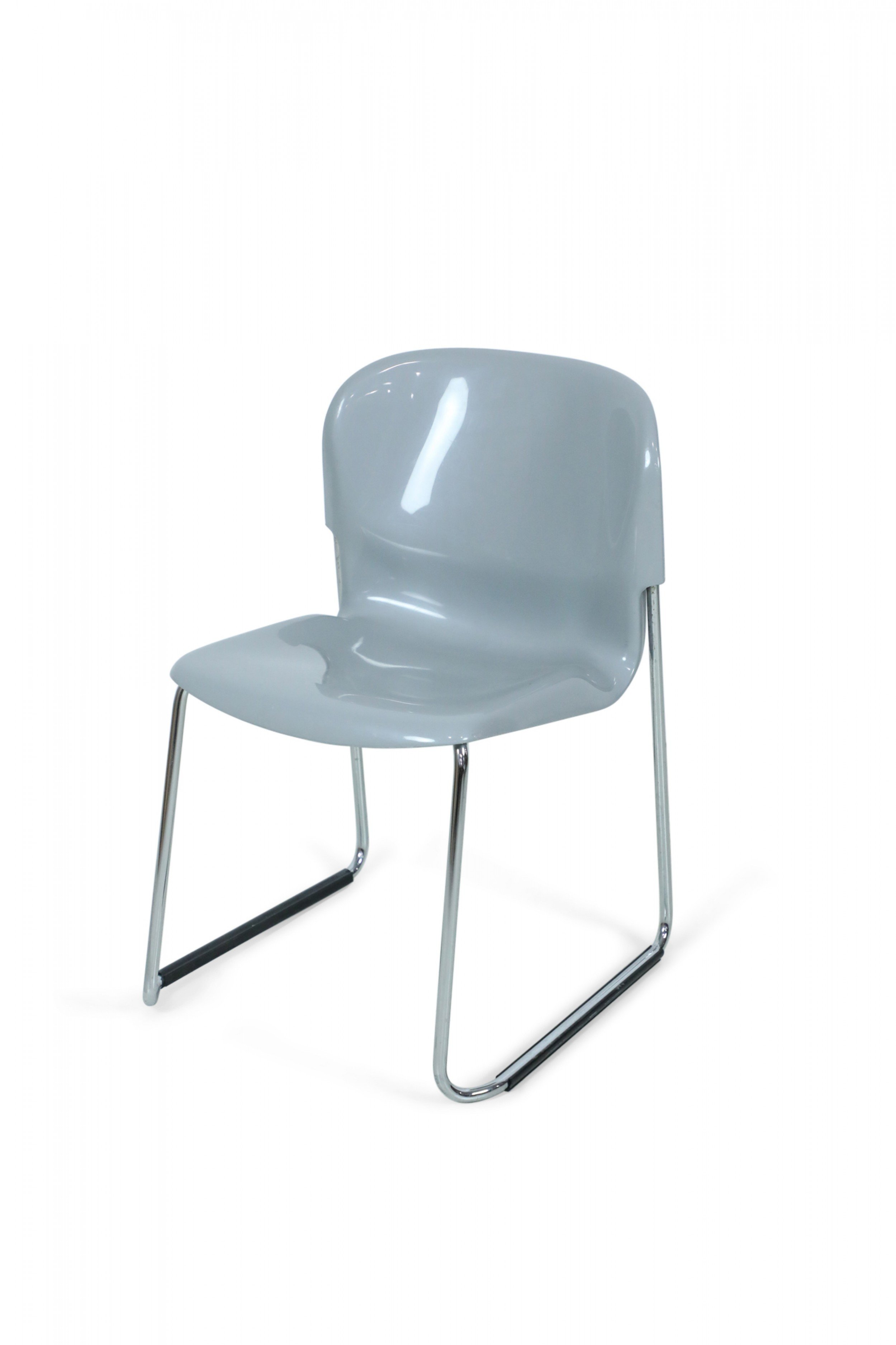 PAIR of Mid-Century stacking side chairs with gray molded plastic seats and backs with tubular chrome bases. (ATELEIER Nova DSM400K, designed by GERD LANGE)(PRICED AS PAIR)