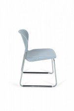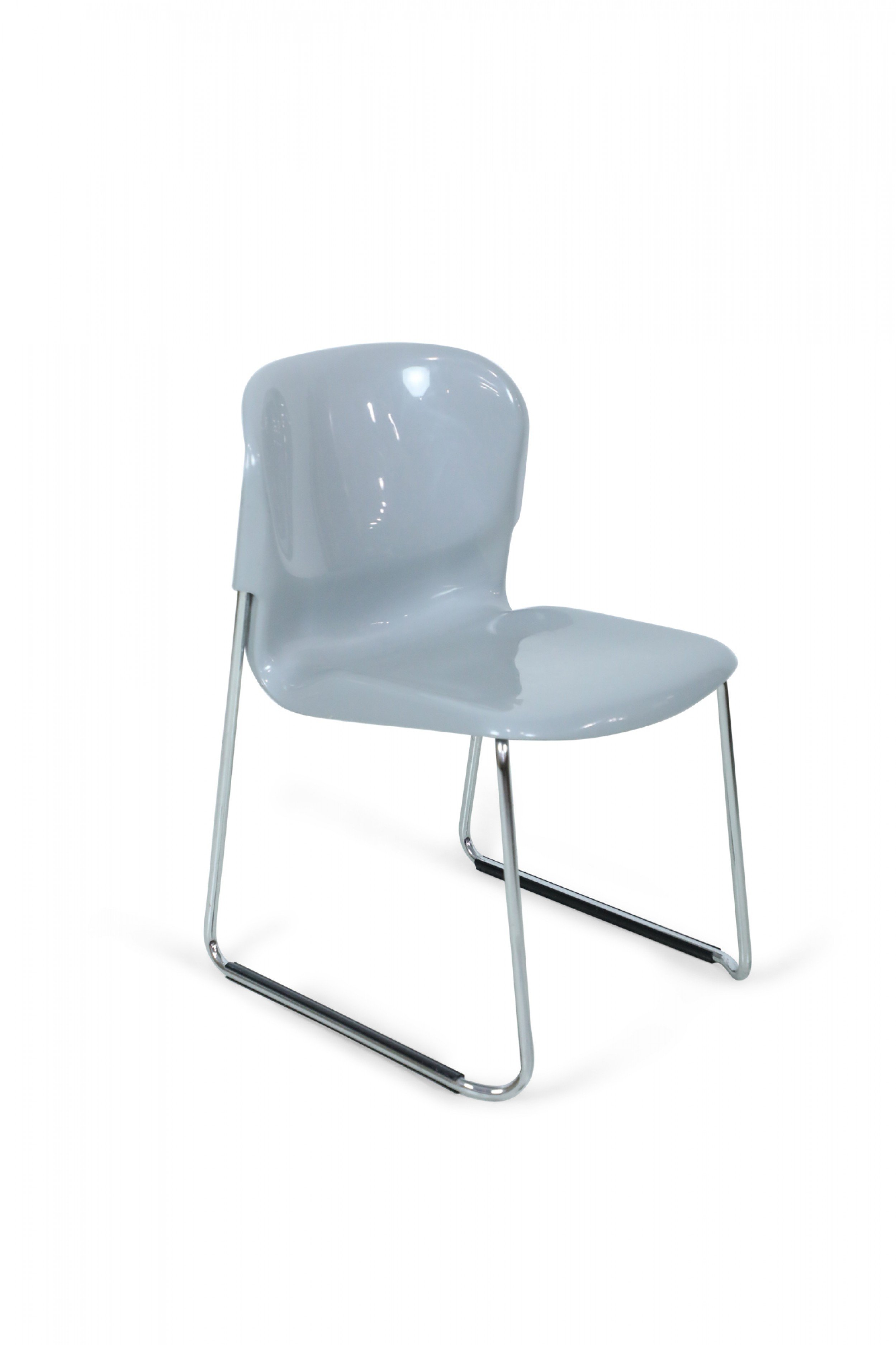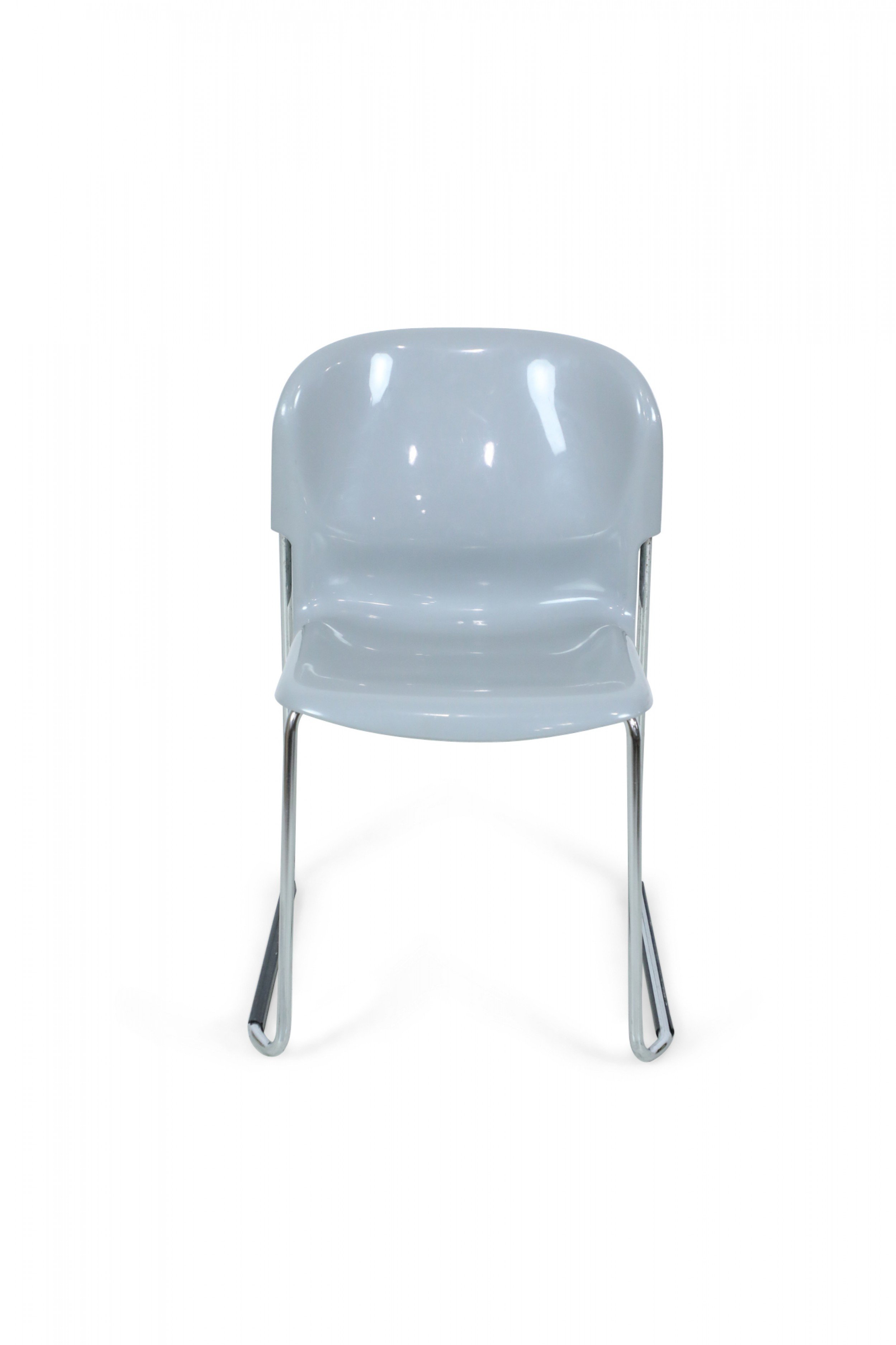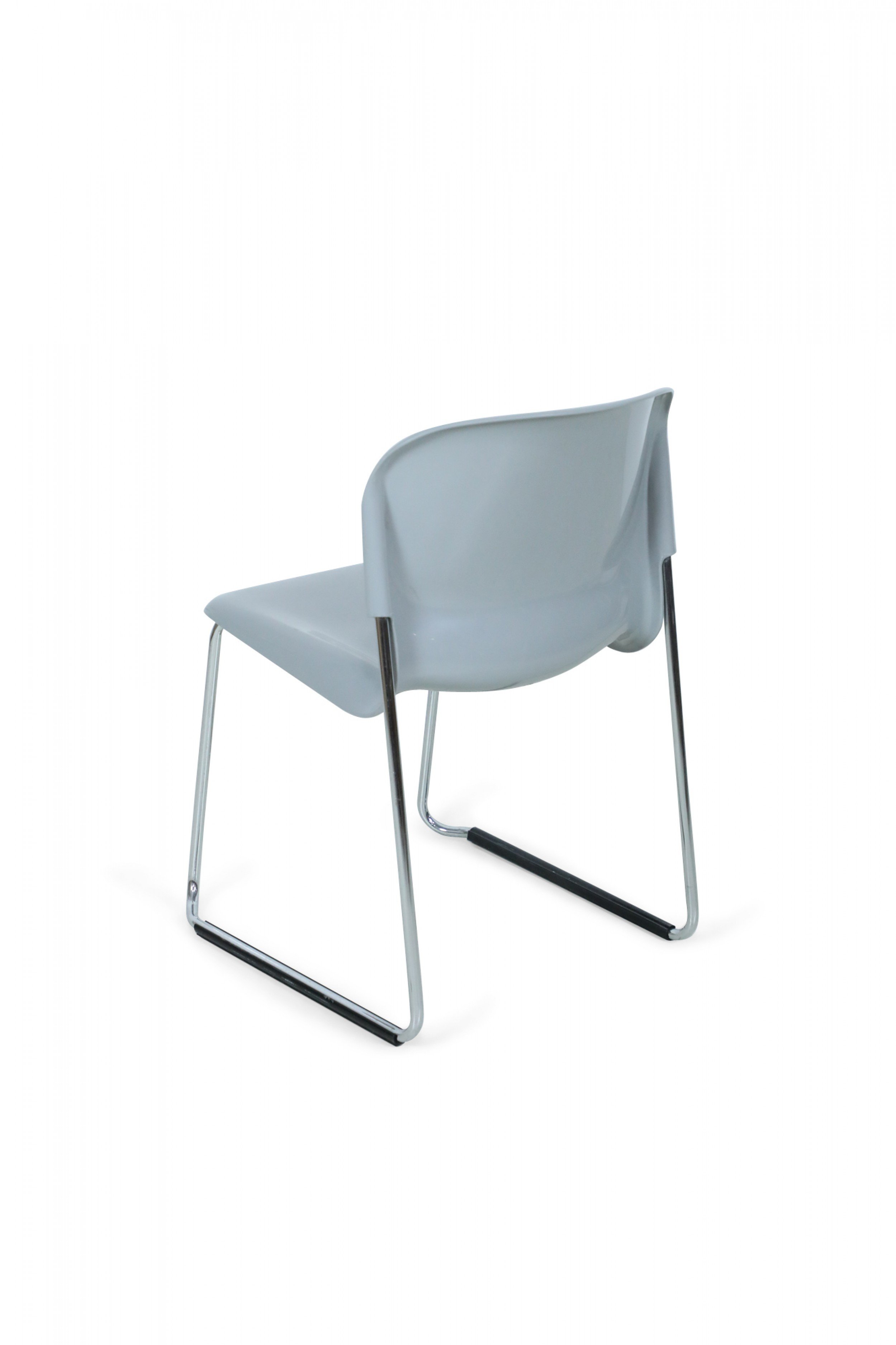 PAIR of Mid-Century stacking side chairs with gray molded plastic seats and backs with tubular chrome bases. (ATELEIER Nova DSM400K, designed by GERD LANGE)(PRICED AS PAIR)