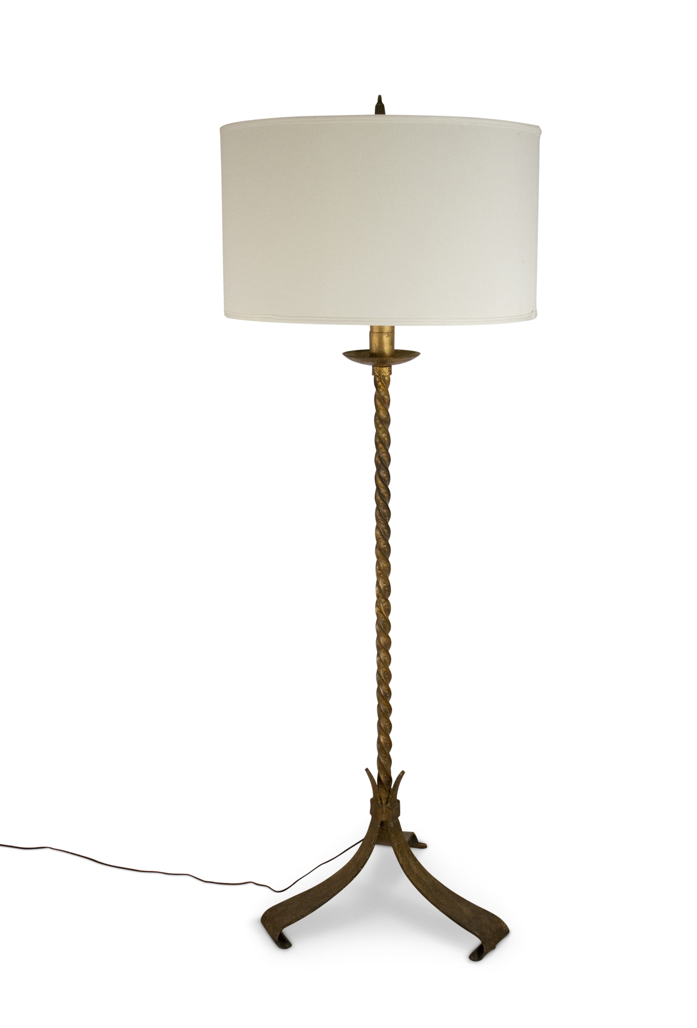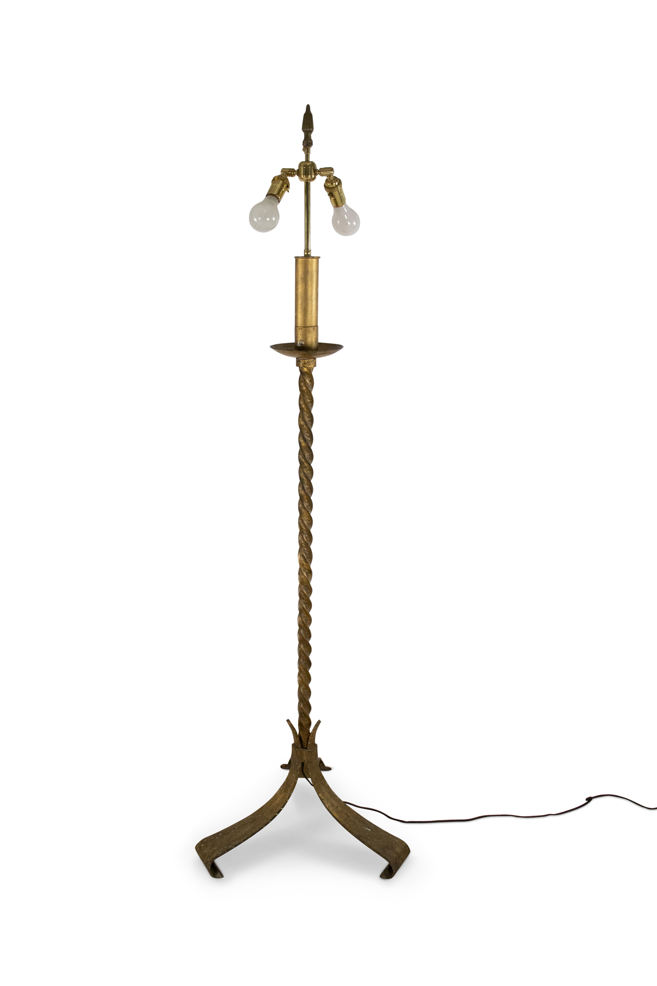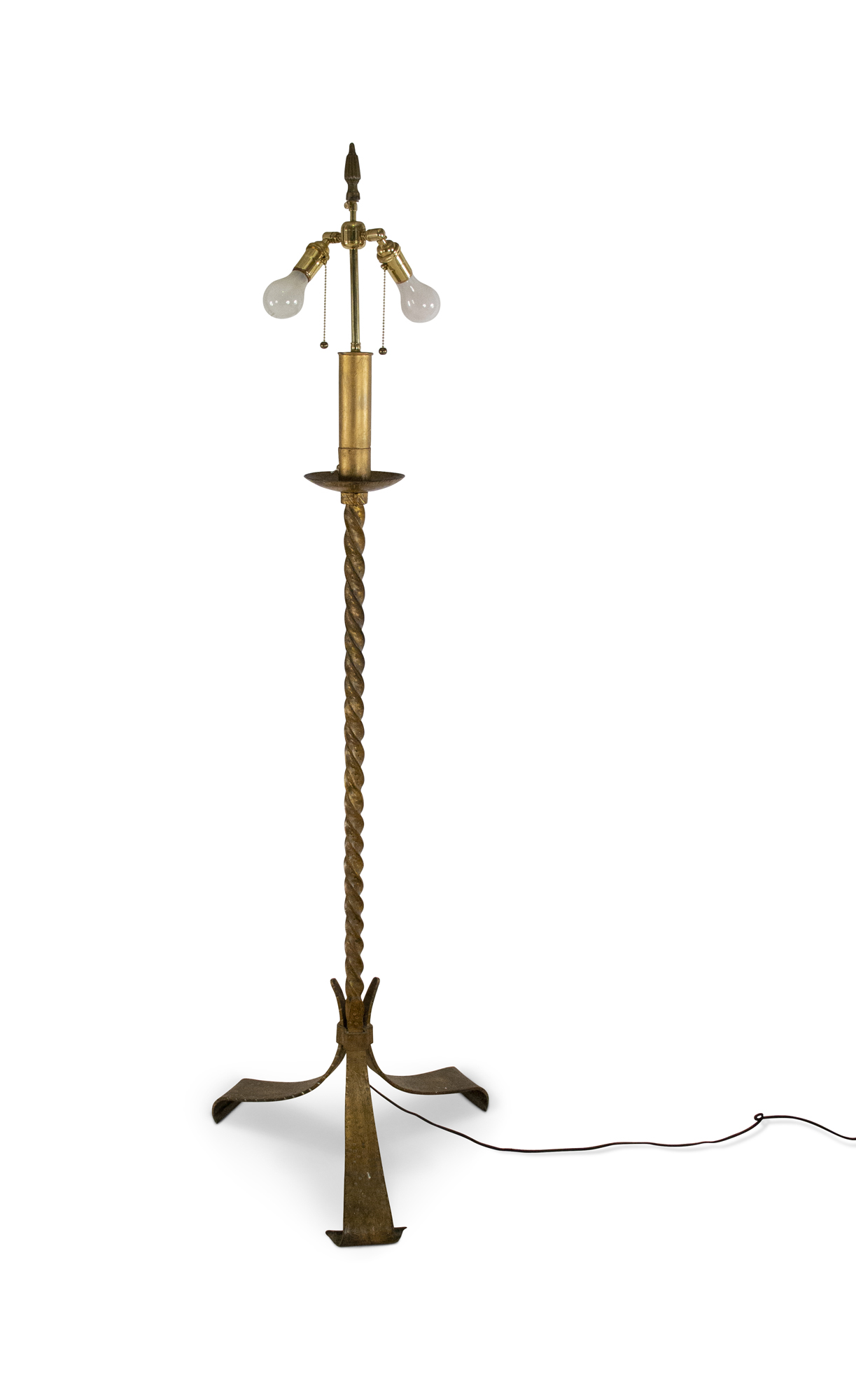 Pair of Mid-Century Gilt Wrought Iron Floor Lamps