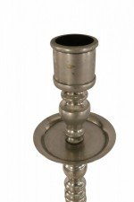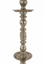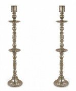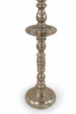Pair of Mid-Century Silver Metal Turned Design Floor Torchiere/Candle Holders
