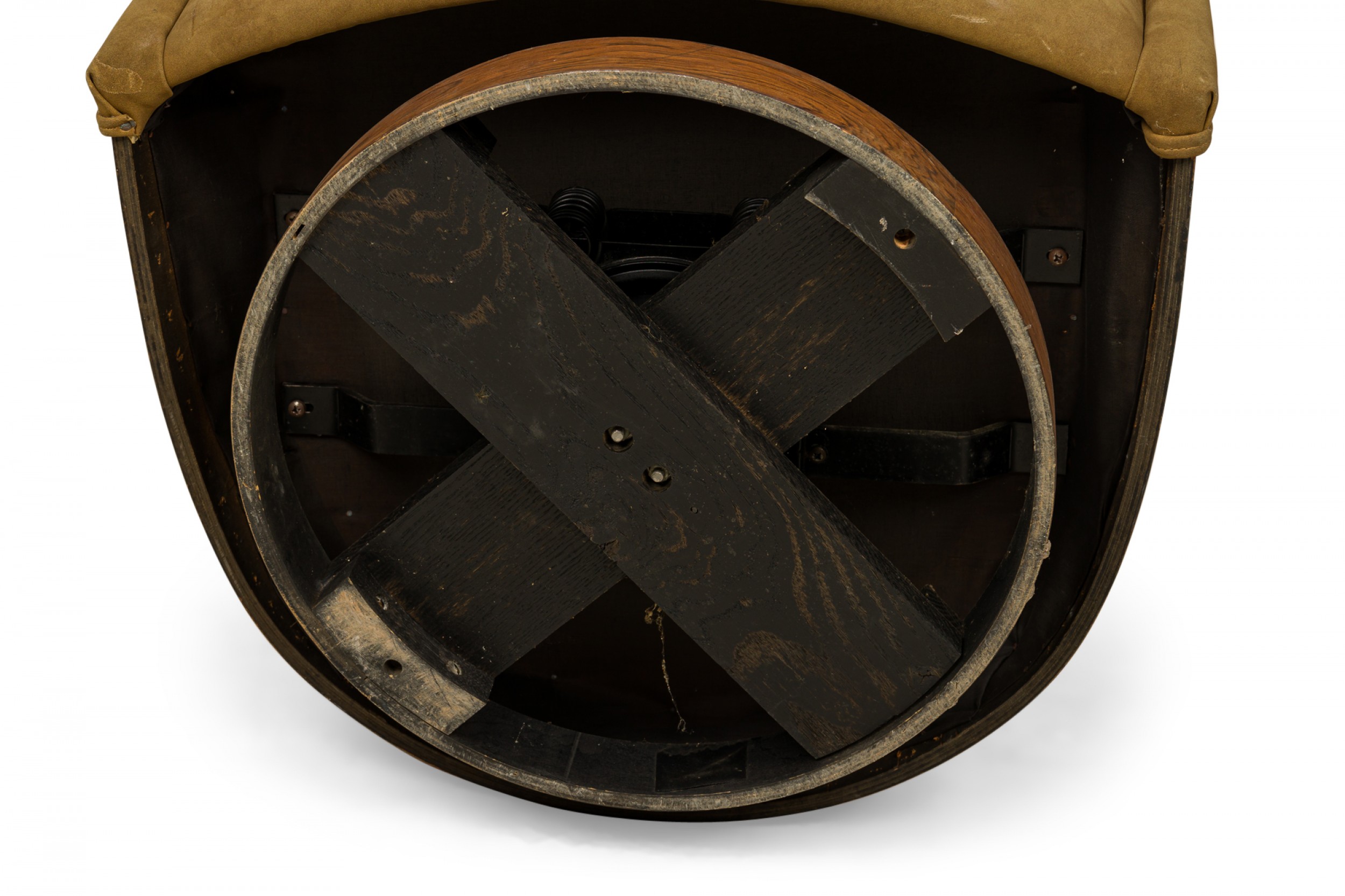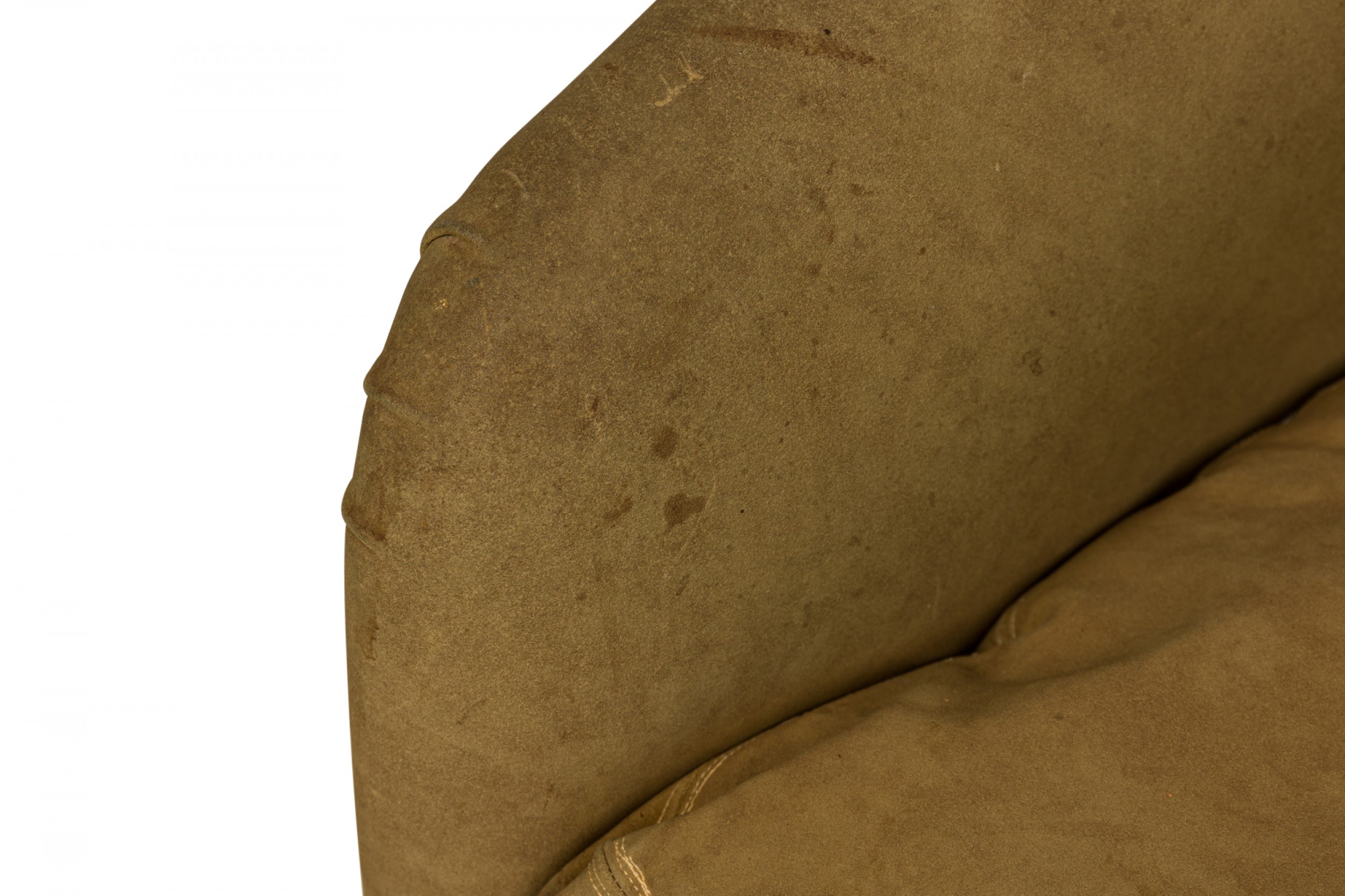 PAIR of American Mid-Century horseshoe-form lounge / armchairs with khaki brown fabric upholstery with removable seat cushions. (MILO BAUGHMAN FOR THAYER COGGIN)(PRICED AS PAIR)