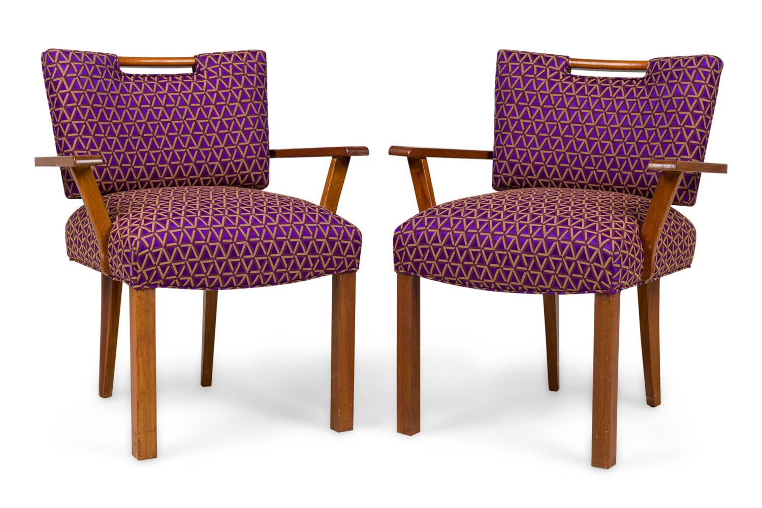 Pair of Paul Laszlo Mid-Century American Geometric Upholstered Armchairs