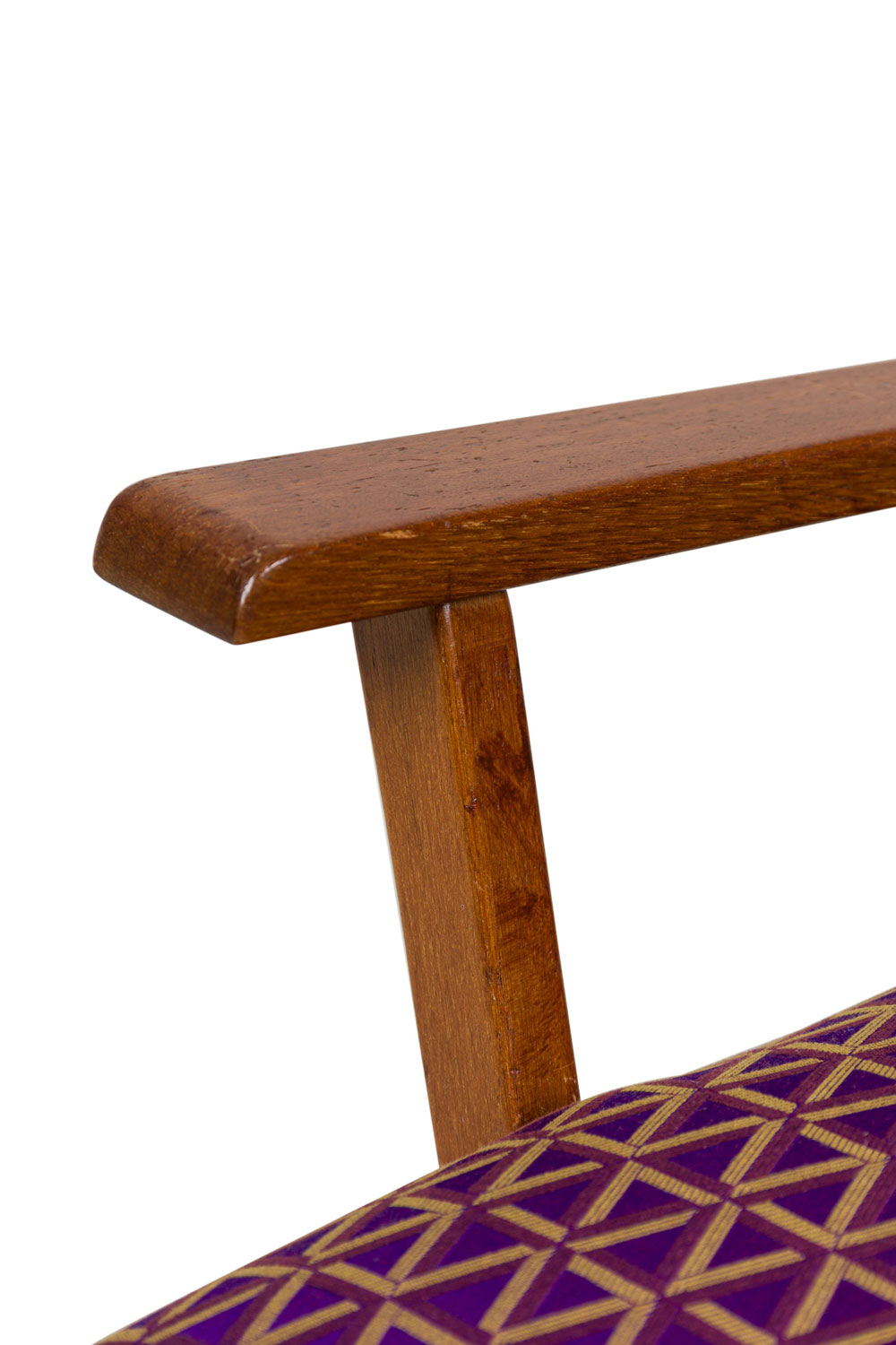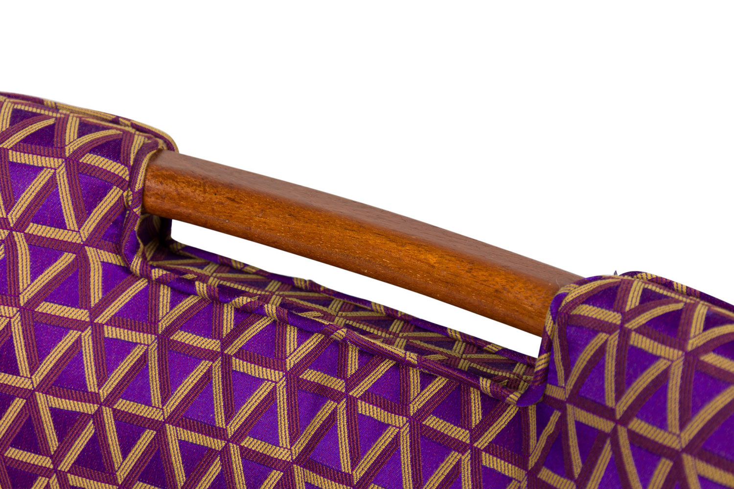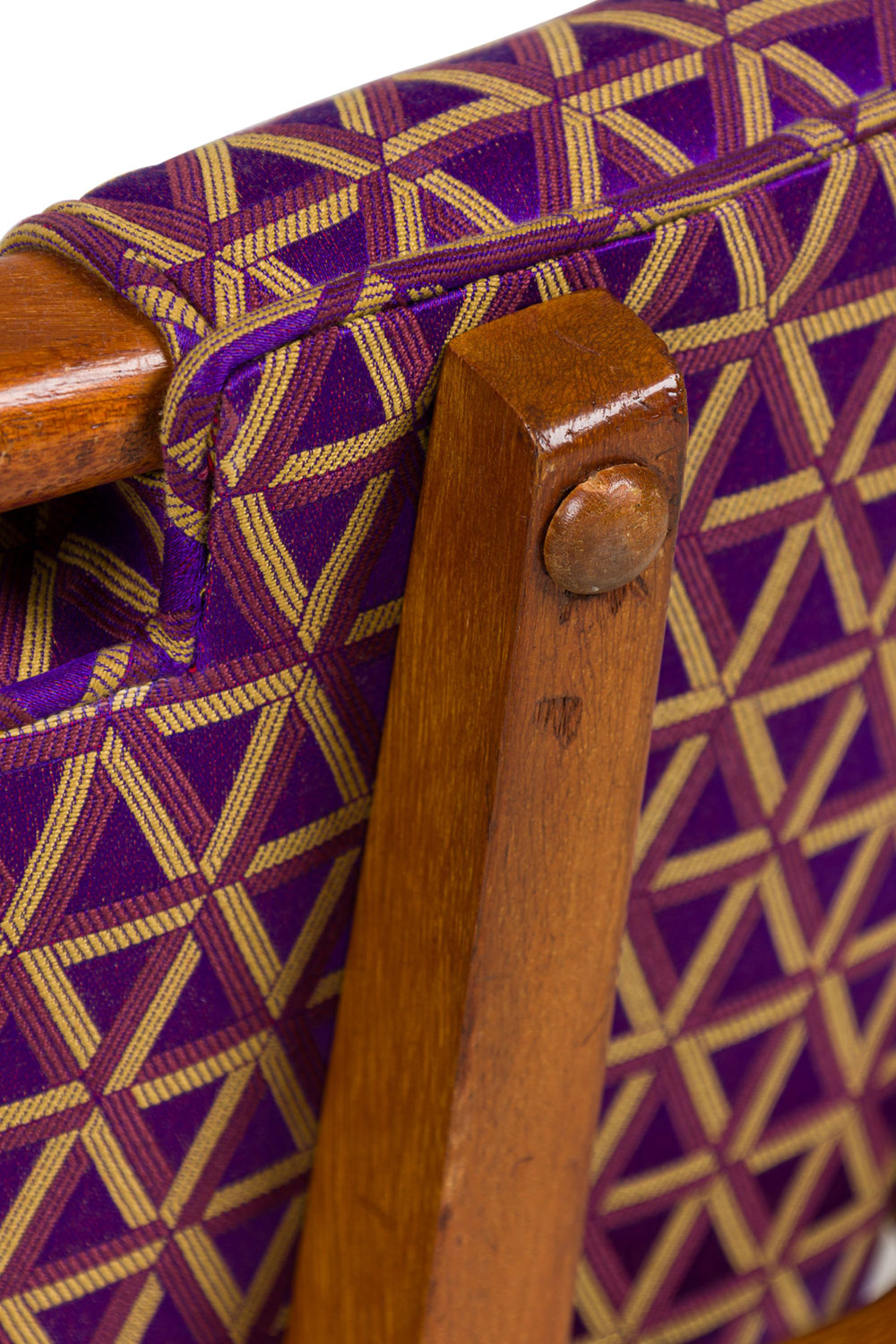 Style: Mid-Century Materials & Techniques: Fabric, upholstered, wood Category: Seating Condition: Some wear to finish on wood and upholstery Good; Wear consistent with age and use