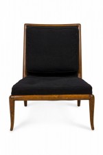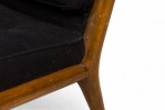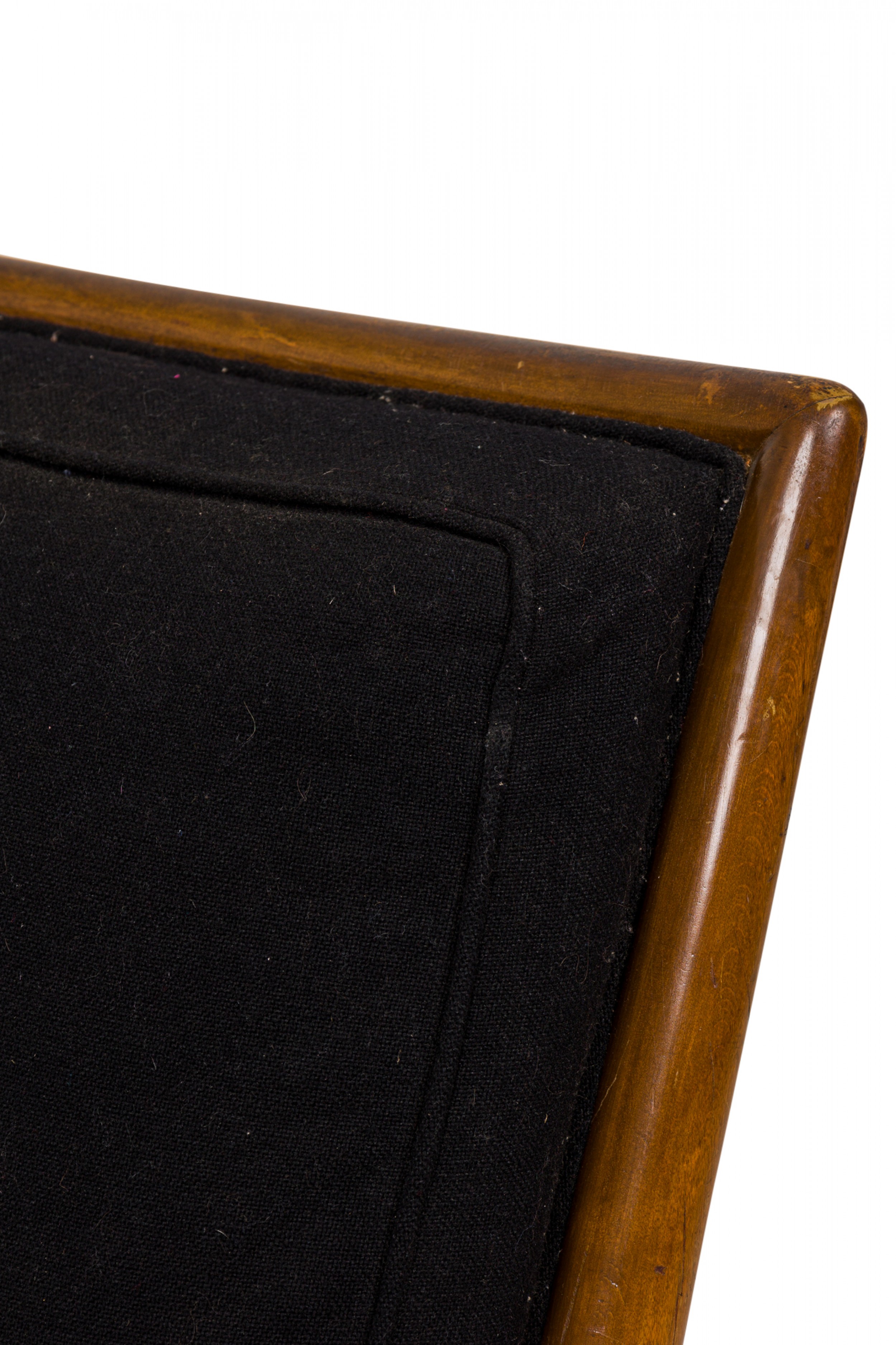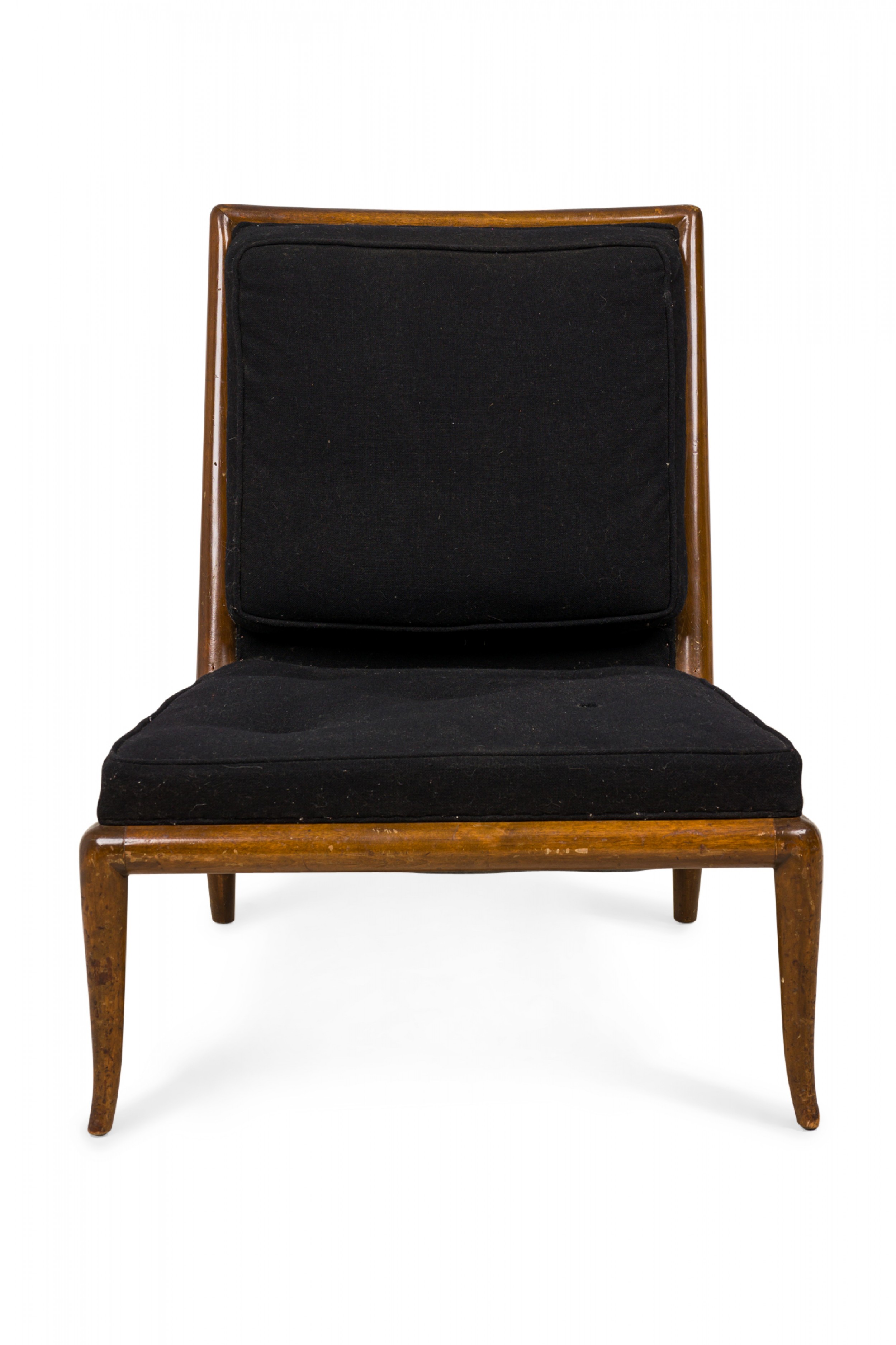 Pair of T.H. Robsjohn-Gibbings / Widdicomb Mid-Century Black Fabric and Walnut Slipper / Side Chairs