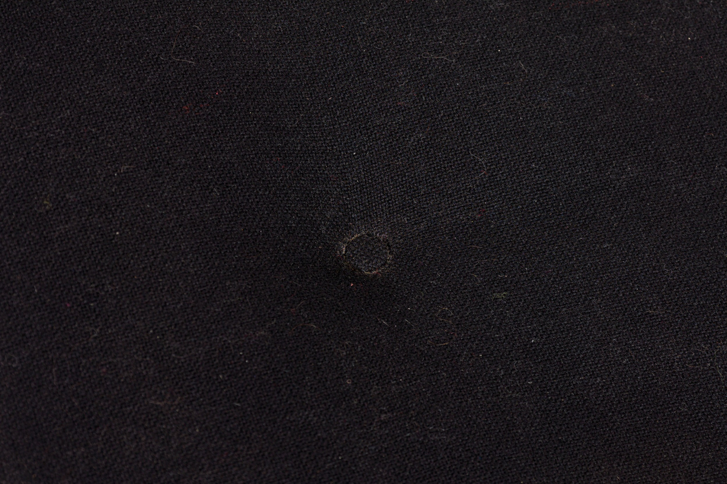 Style: Mid-Century Materials & Techniques: Fabric, tufted, upholstered, walnut, wood Category: Seating Good; Wear consistent with age and use