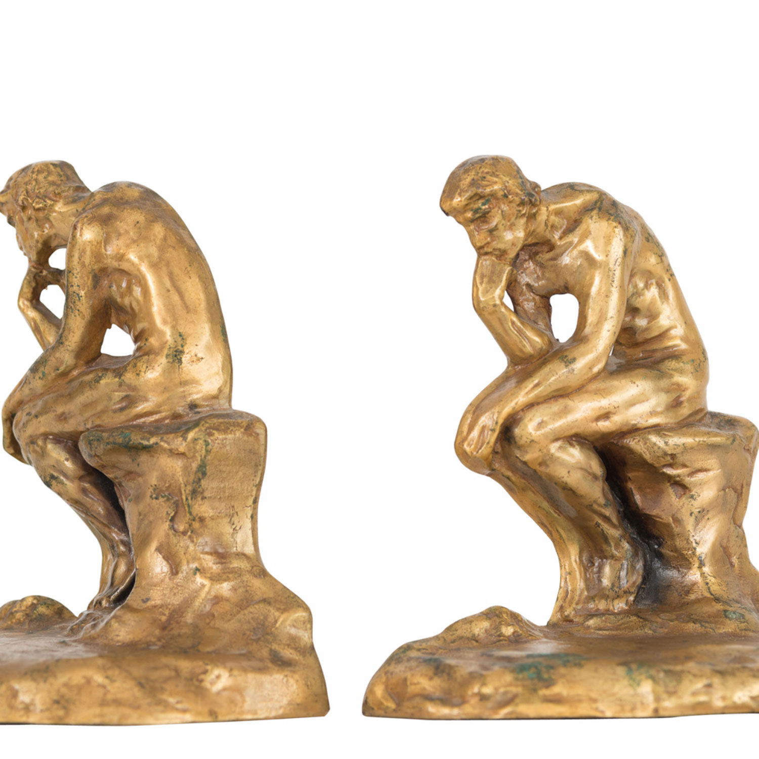 PAIR of vintage brass "The Thinker" bookends (PRICED AS PAIR)