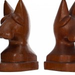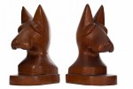 PAIR of vintage wood stylized dog head bookends (PRICED AS PAIR)