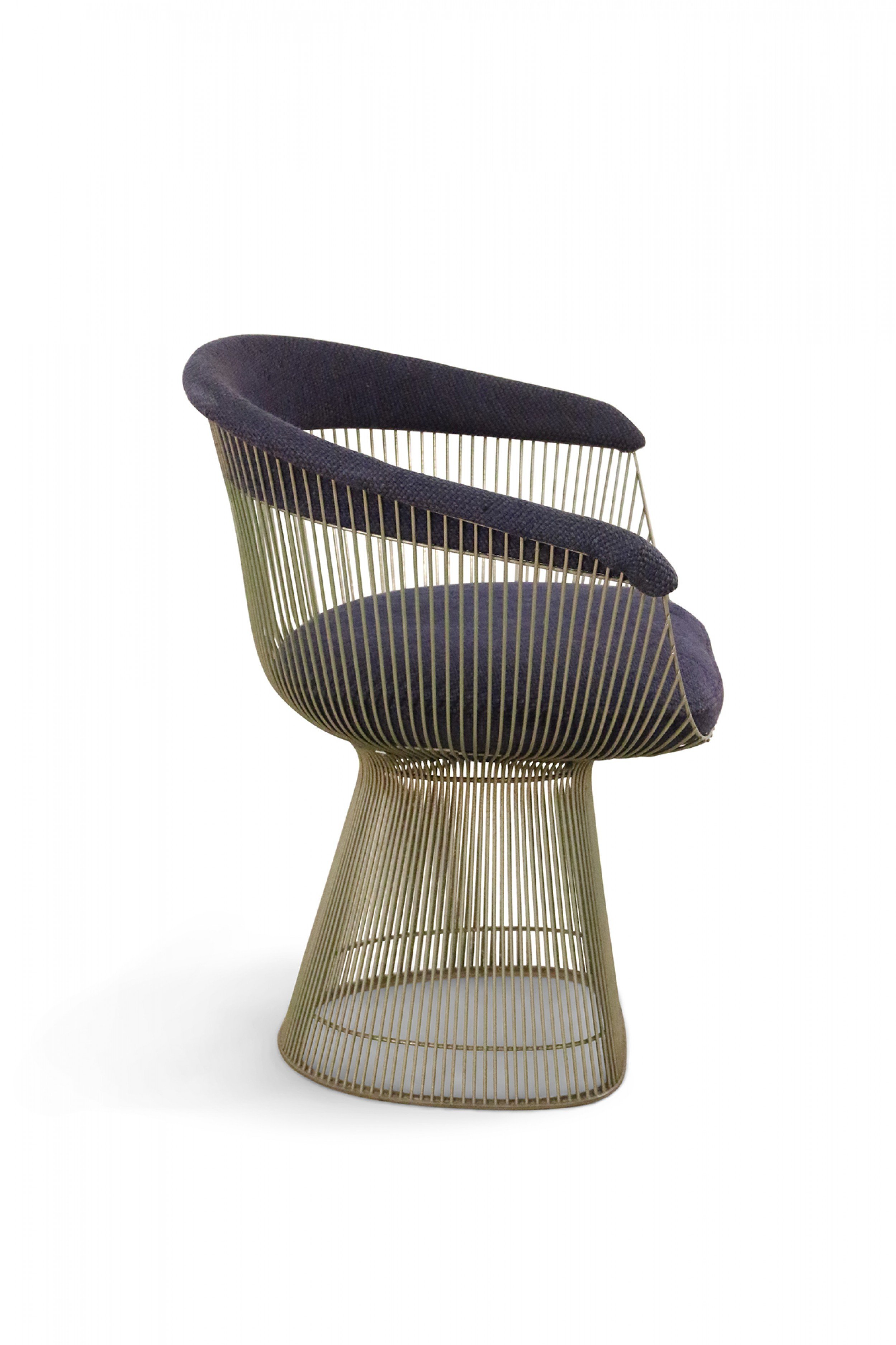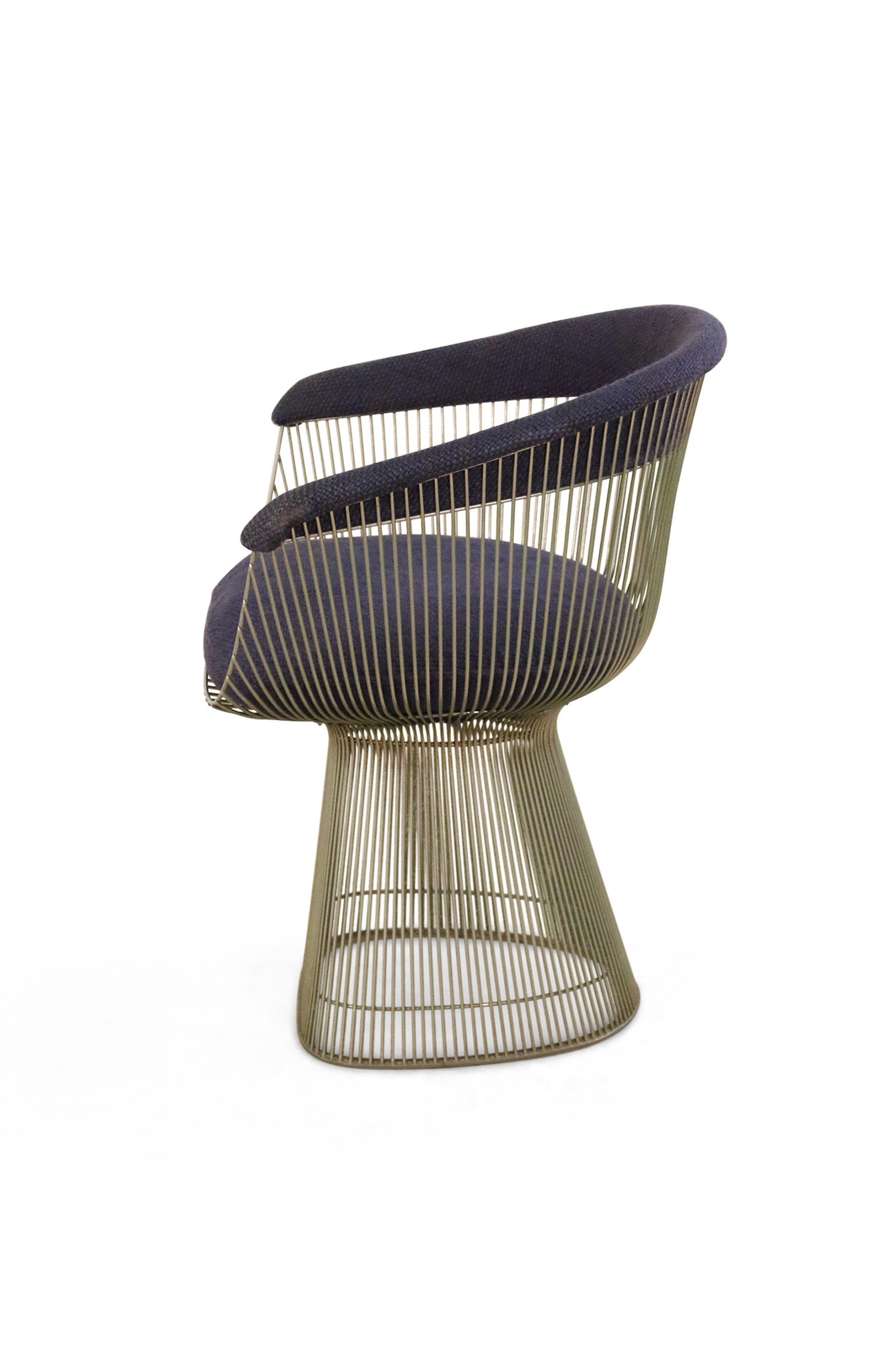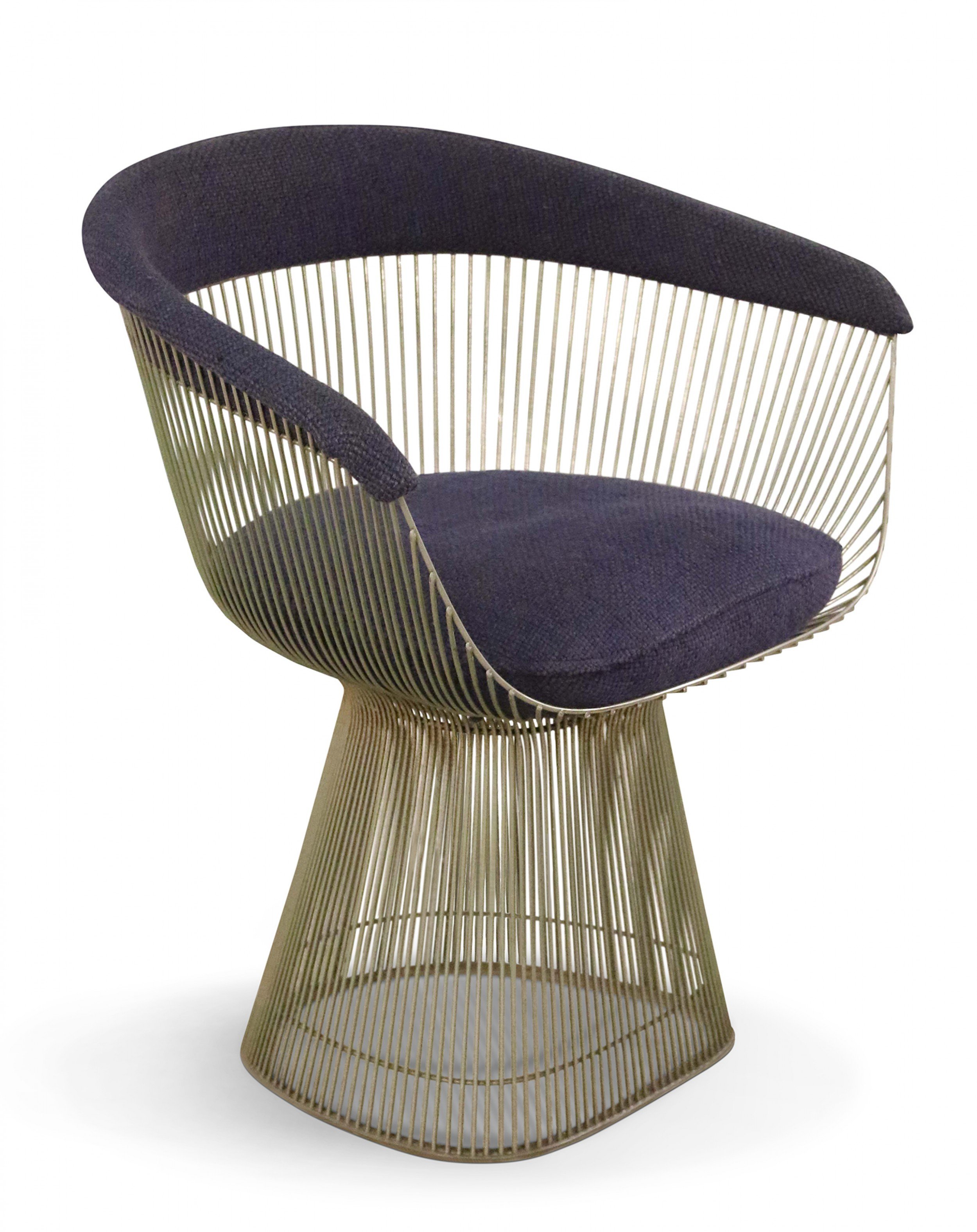 Warren Platner for Knoll Curved Steel and Blue Upholstered Arm Chairs