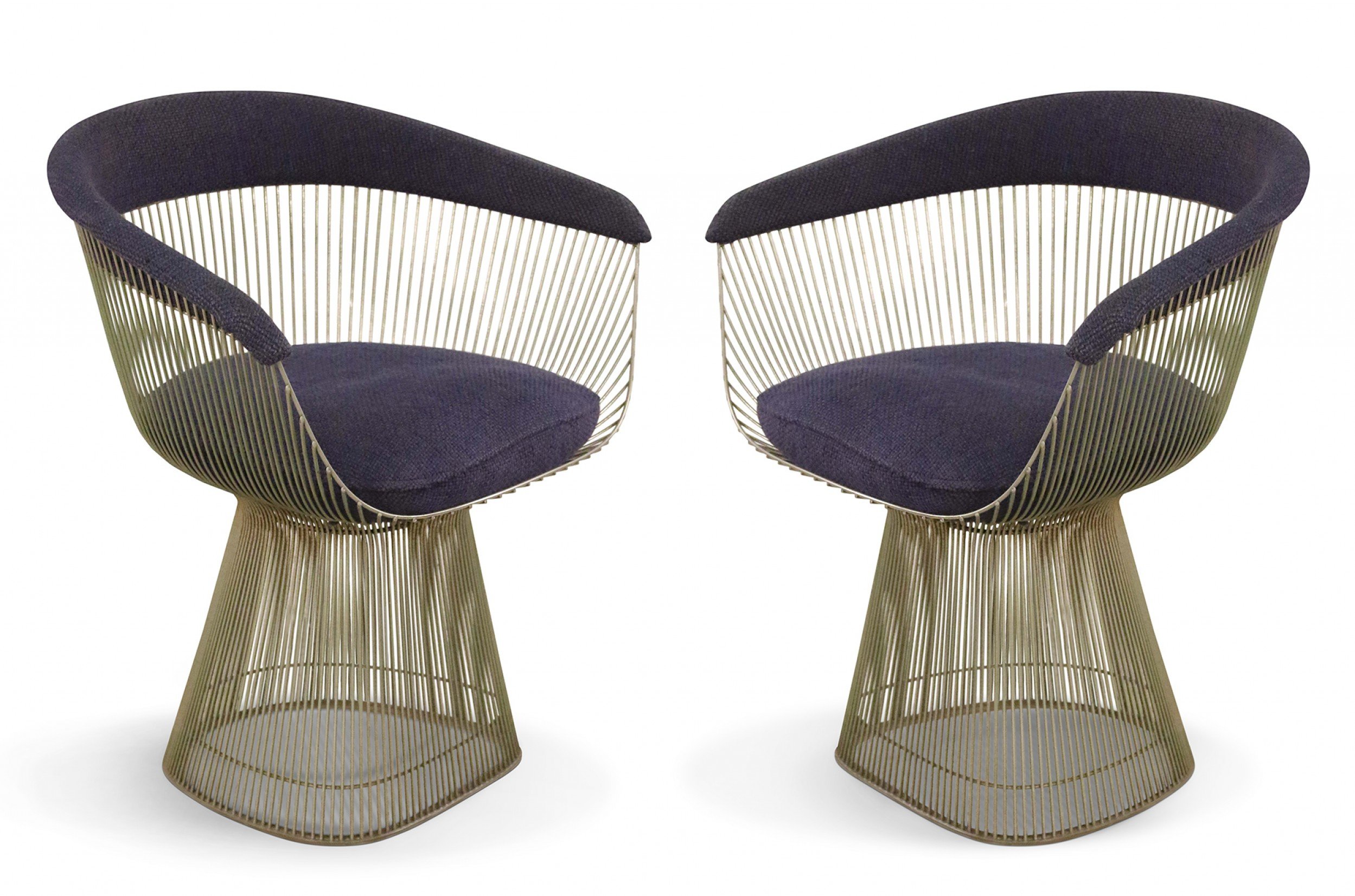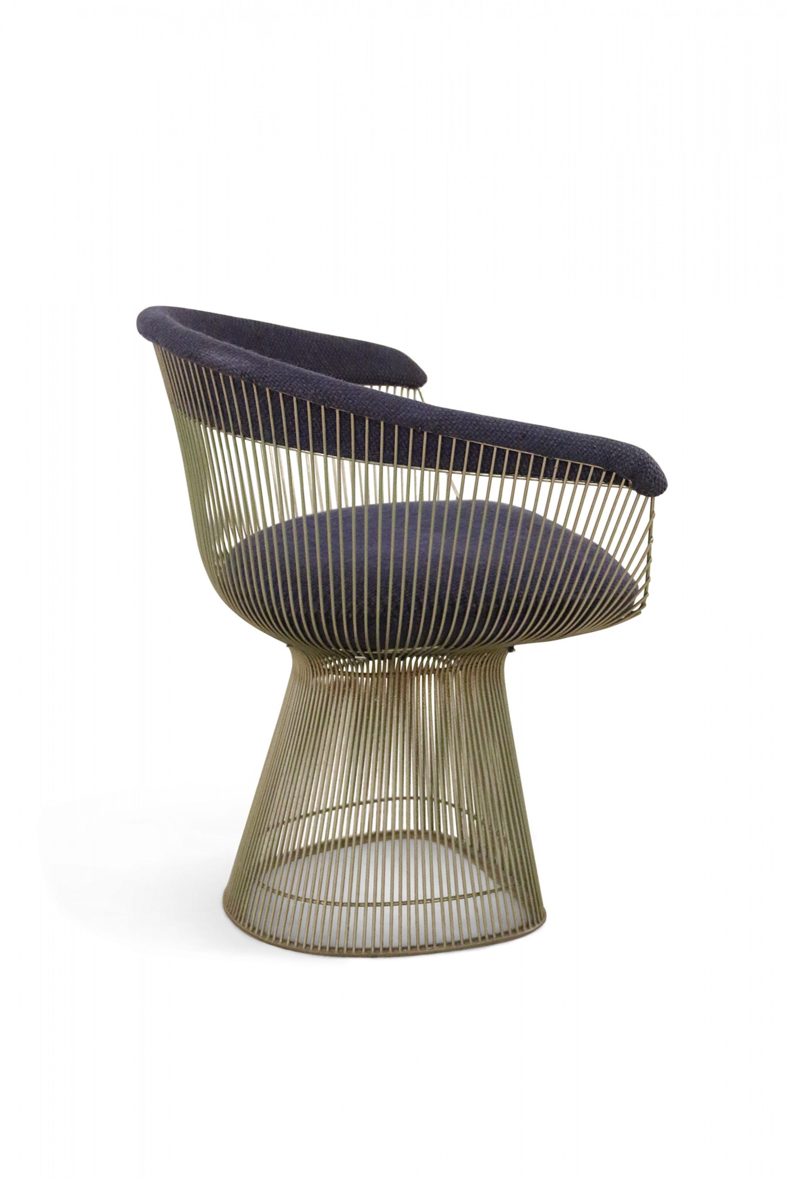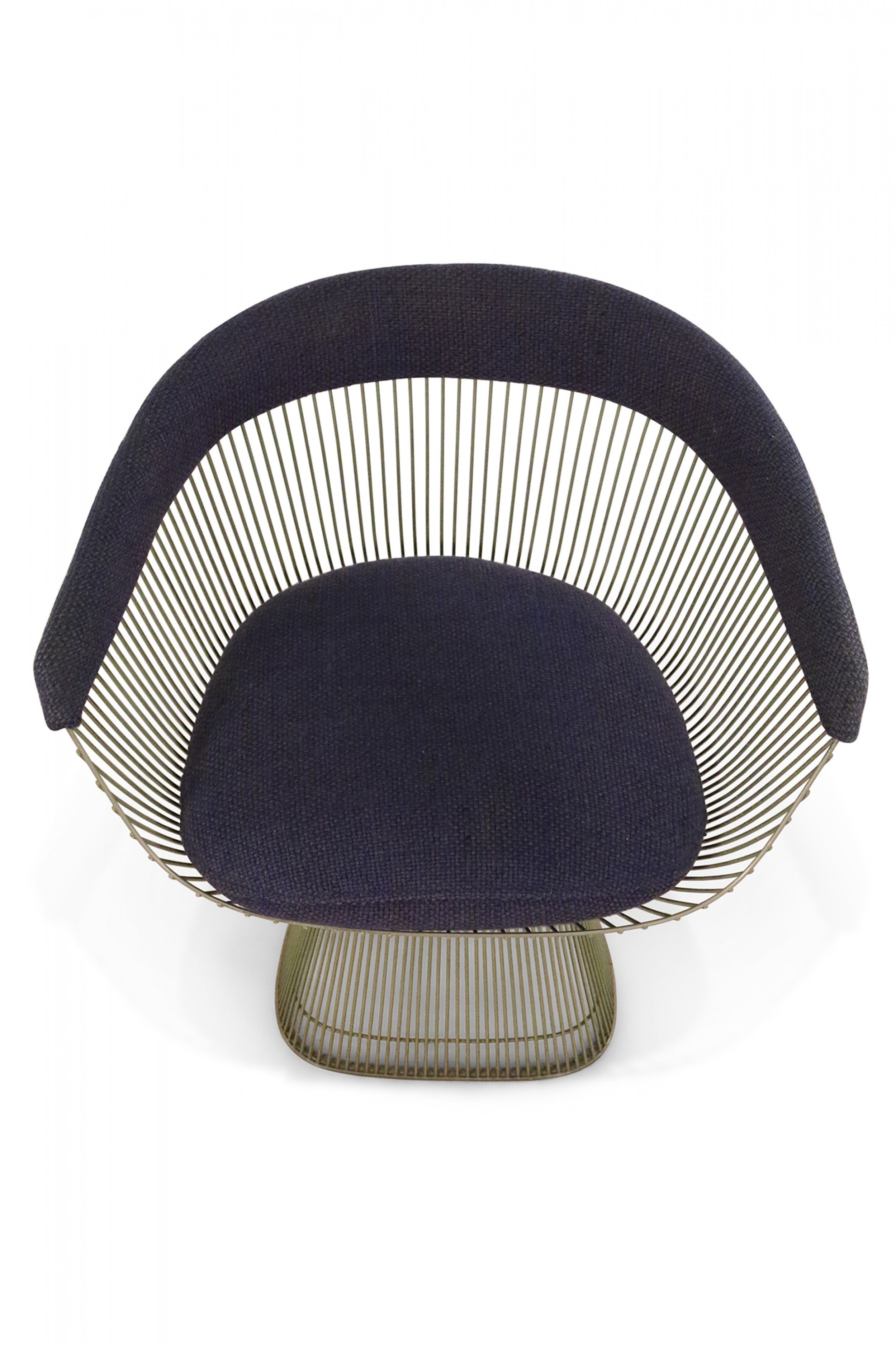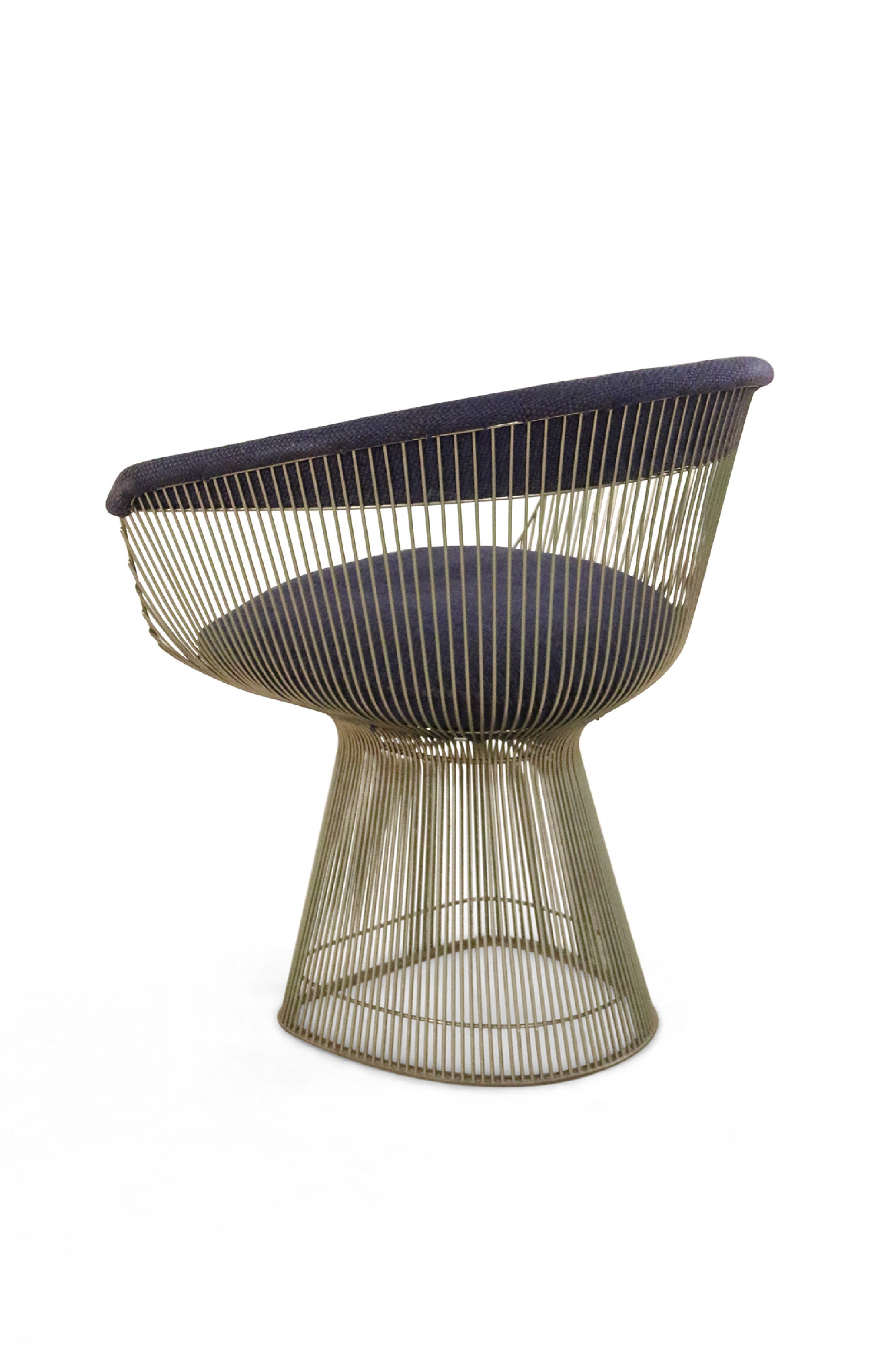 Warren Platner for Knoll Curved Steel and Blue Upholstered Arm Chairs
