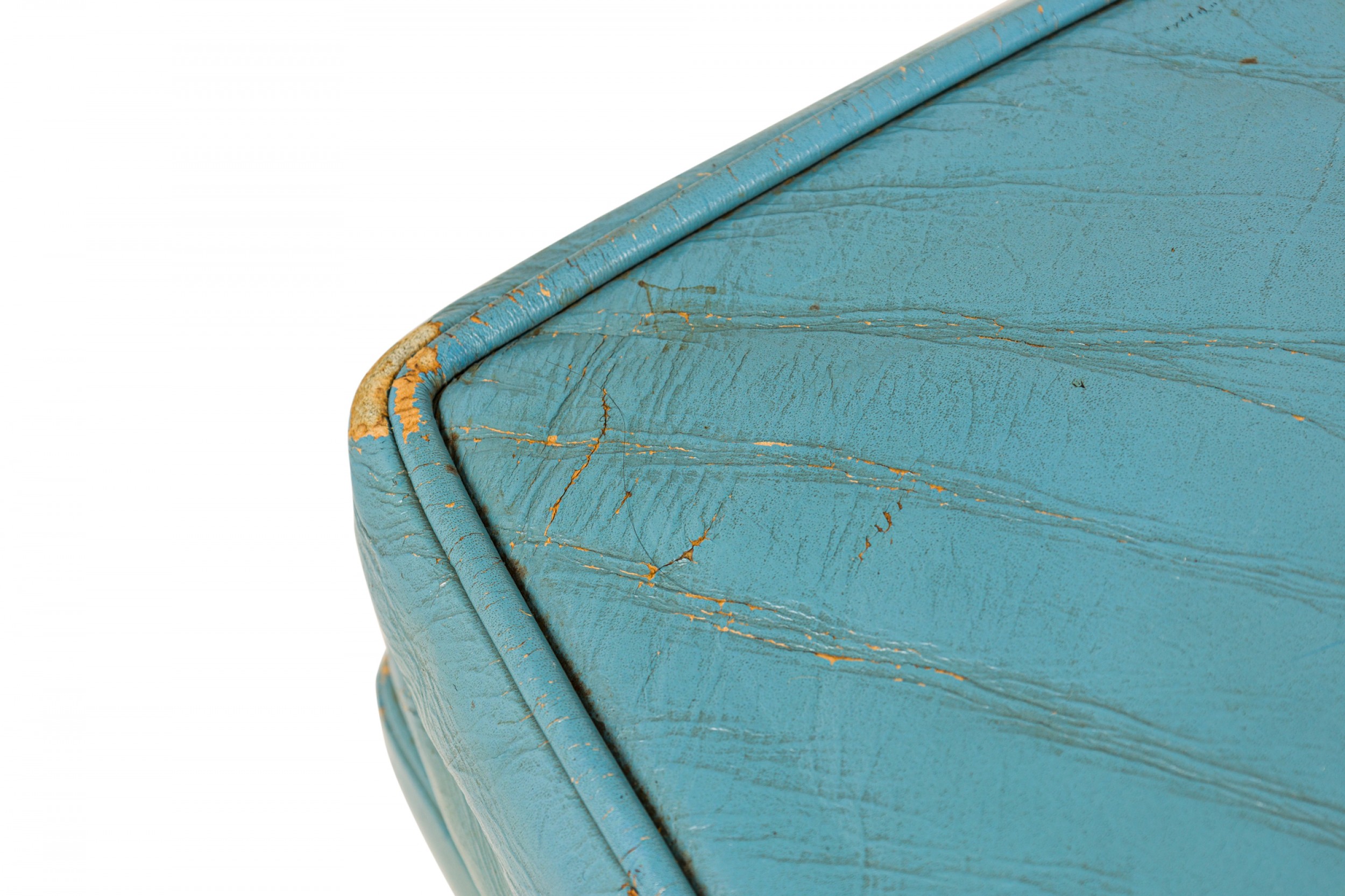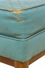 Style: Mid-Century Materials & Techniques: Leather, upholstered, walnut, wood Category: Seating Condition: Leather is cracking. Good; Wear consistent with age and use