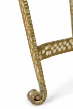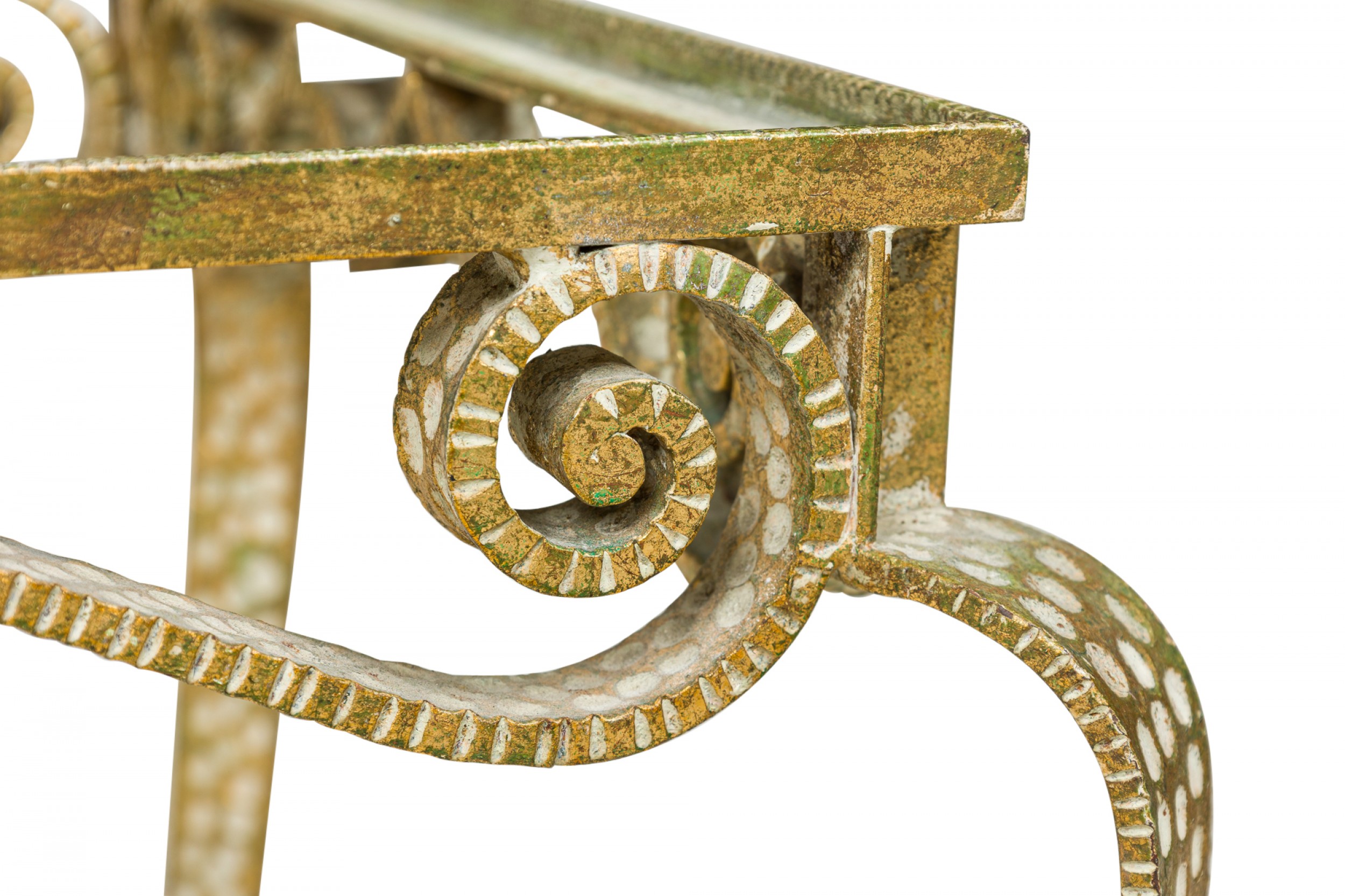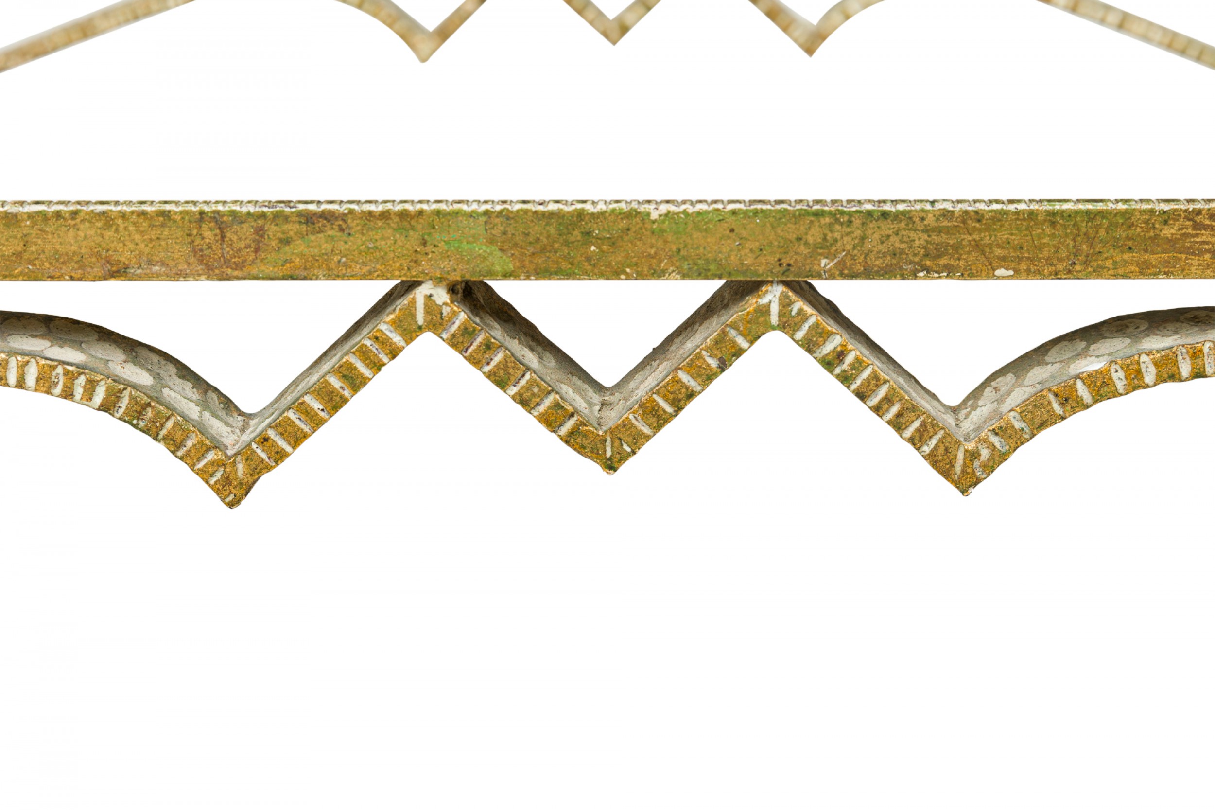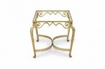 Style: Mid-Century Materials & Techniques: Gilt / giltwood, iron, metal Category: Tables Condition: Wear to finish, frame only, missing glass. Good; Wear consistent with age and use