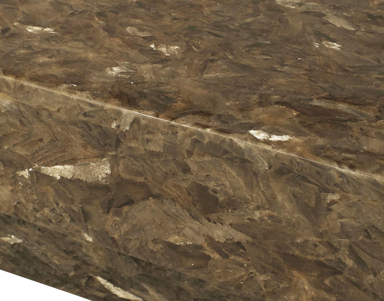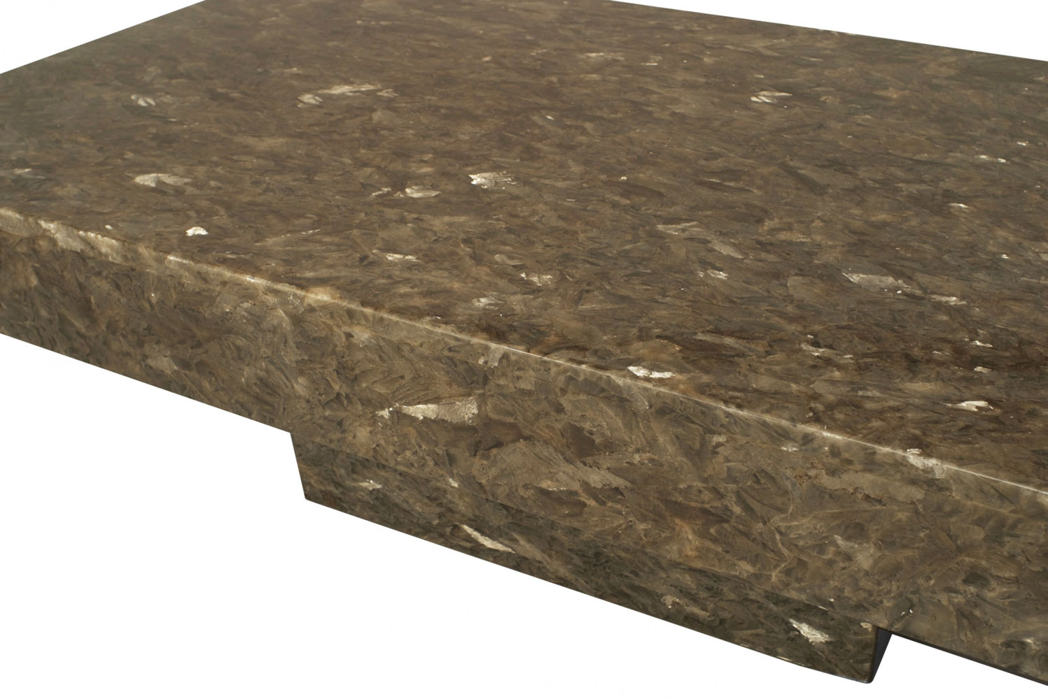 Italian Mid-Century Modern (1960s) rectangular beige mica and resin coffee table resting on a solid base.