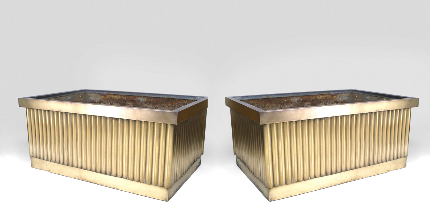 2 PAIR of American Art Deco (1930's) monumental rectangular bronze planters (jardiniere) with a fluted design (PROVENANCE: ROCKEFELLER CENTER-PRICED PER PAIR)