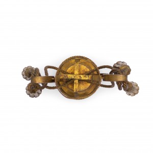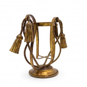 Rope and tassel (20th century) design gilt metal swirl bottle holder.