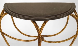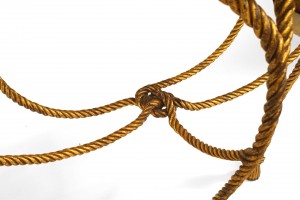 Style: Mid-Century Materials & Techniques: Marble, metal, rope, wood, gilt / giltwood, tassel Category: Tables, Dining Room