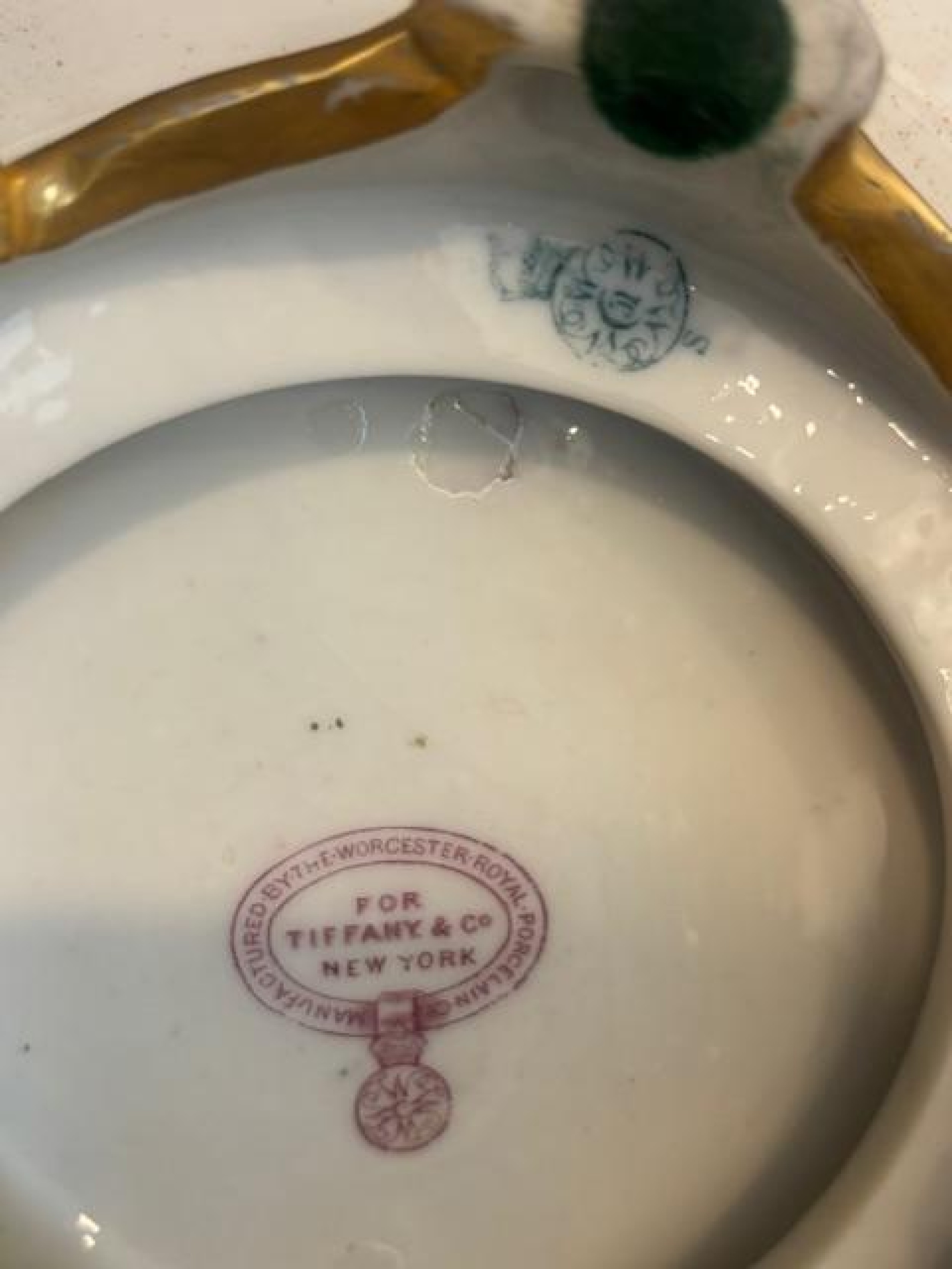Style: English Materials & Techniques: Porcelain Category: Accessories/Décor/Bric-a-Brac, Dining Room Condition: small chips to floral design)