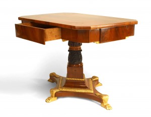 Style: Russian Materials & Techniques: Carved, mahogany Category: Tables Condition: Top is wobbly.