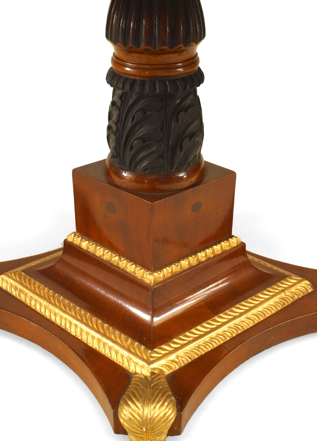 Russian Neoclassic (19th Century) parcel gilt & ebonized mahogany center table with a frieze drawer on an acanthus carved stem and quadripartite base with claw feet.