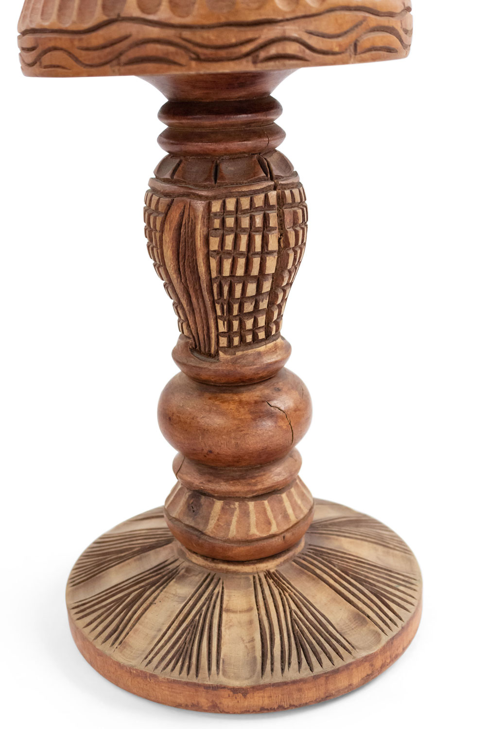 Pair of Rustic Adirondack Style Carved Wooden Table Lamps