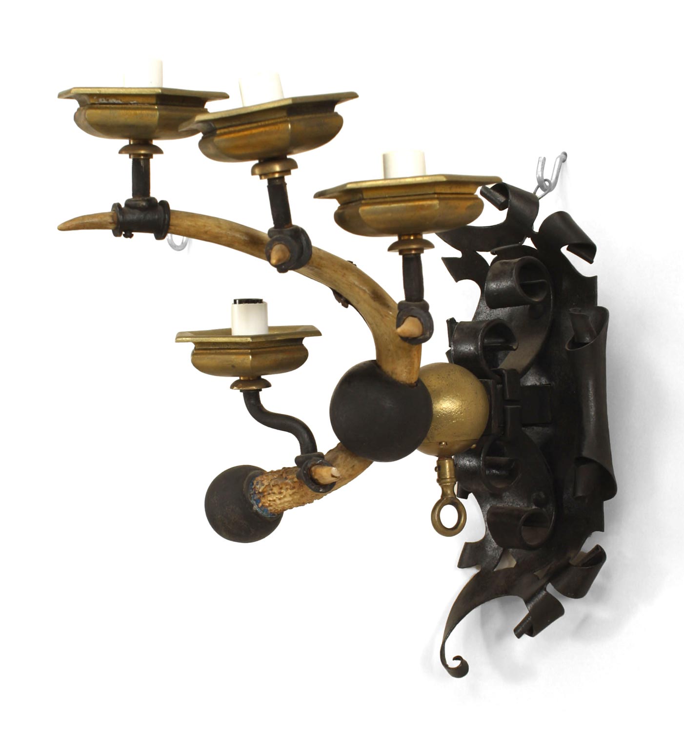 Rustic Horn Iron and Brass Wall Sconce
