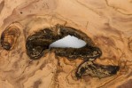 Rustic rectangular olive wood cutting board with live edge organic shape..