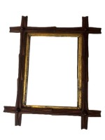 Rustic Adirondack style small mirror with a walnut and gold trimmed frame with a carved faux twig design