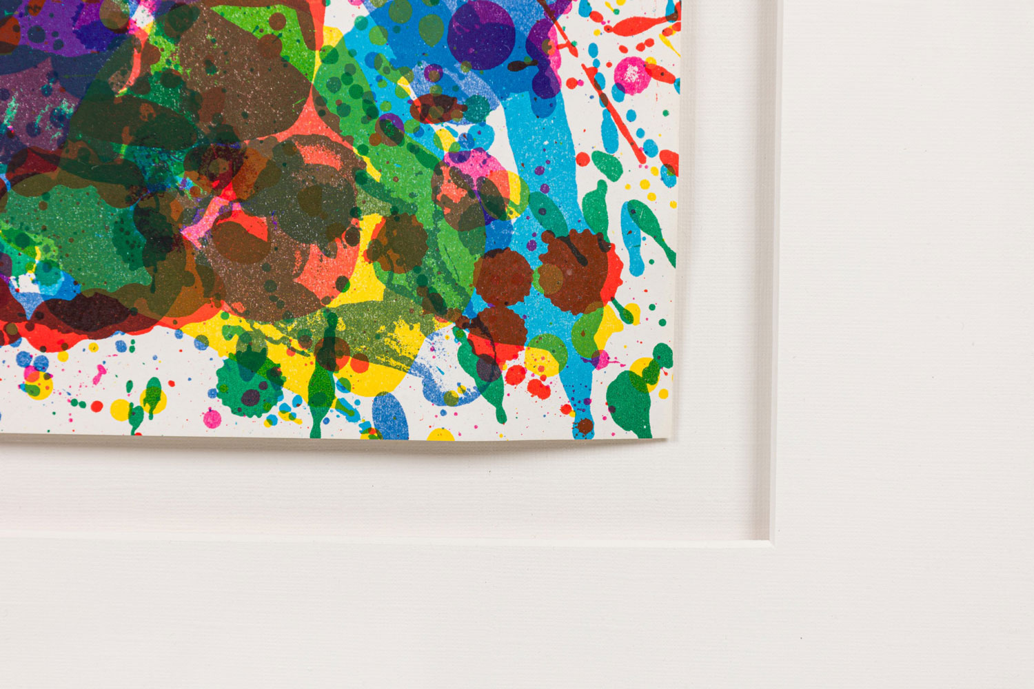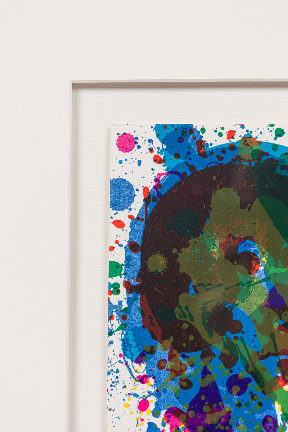 Contemporary American Abstract Expressionist lithograph with scattered colors in an automatic manner in a silver frame with white mat (Certificate of Authenticity: SAM FRANCIS)