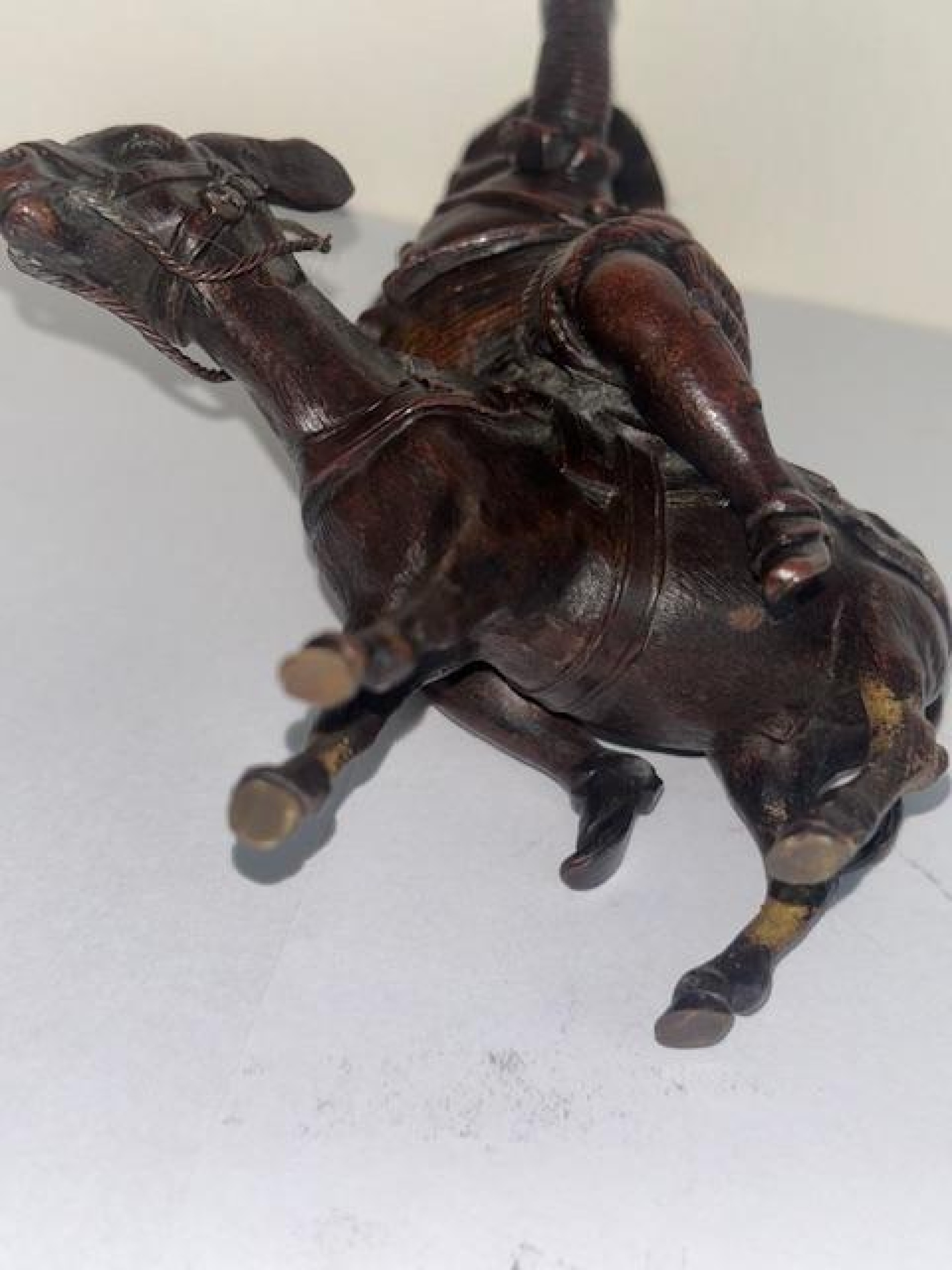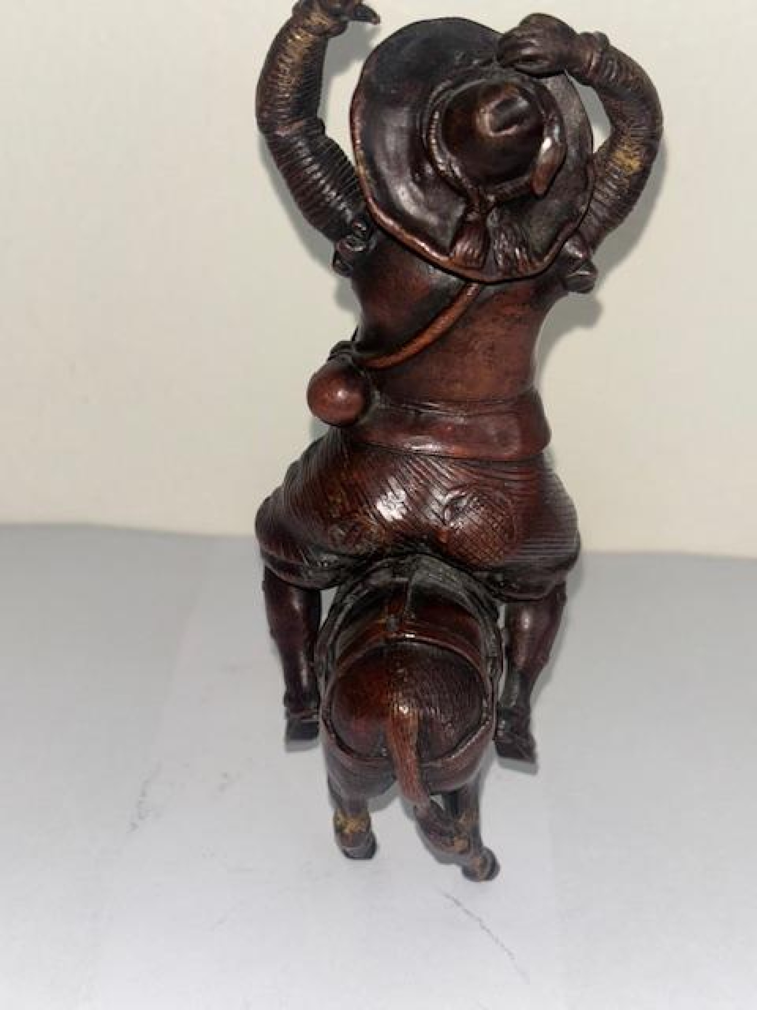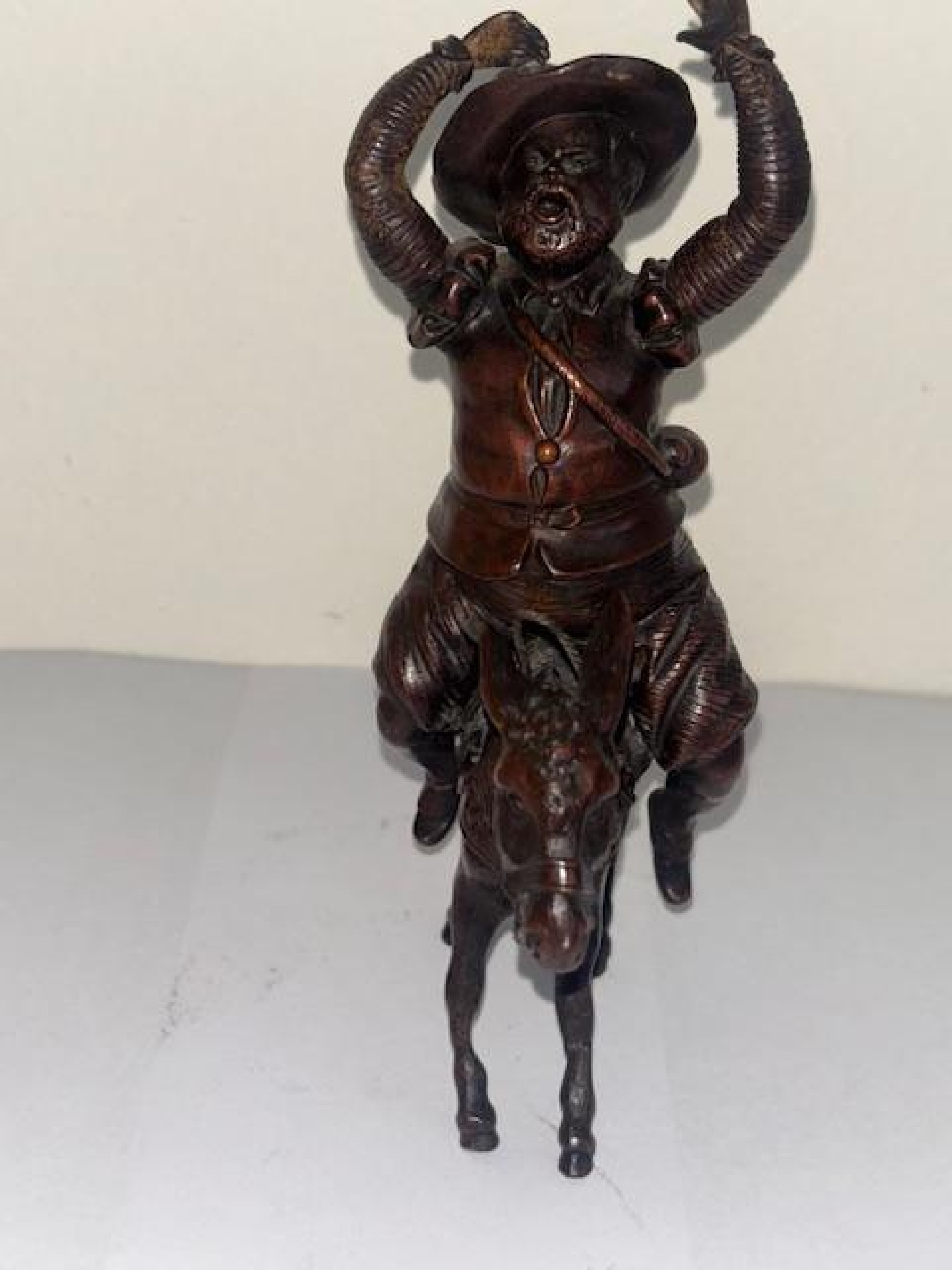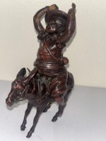 French (19th Century) small bronze of Sancho Panza with raised hands sitting on a donkey