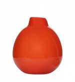 Scandinavian Mid-Century bulbous-shaped red and white case glass bud vase with a short neck.