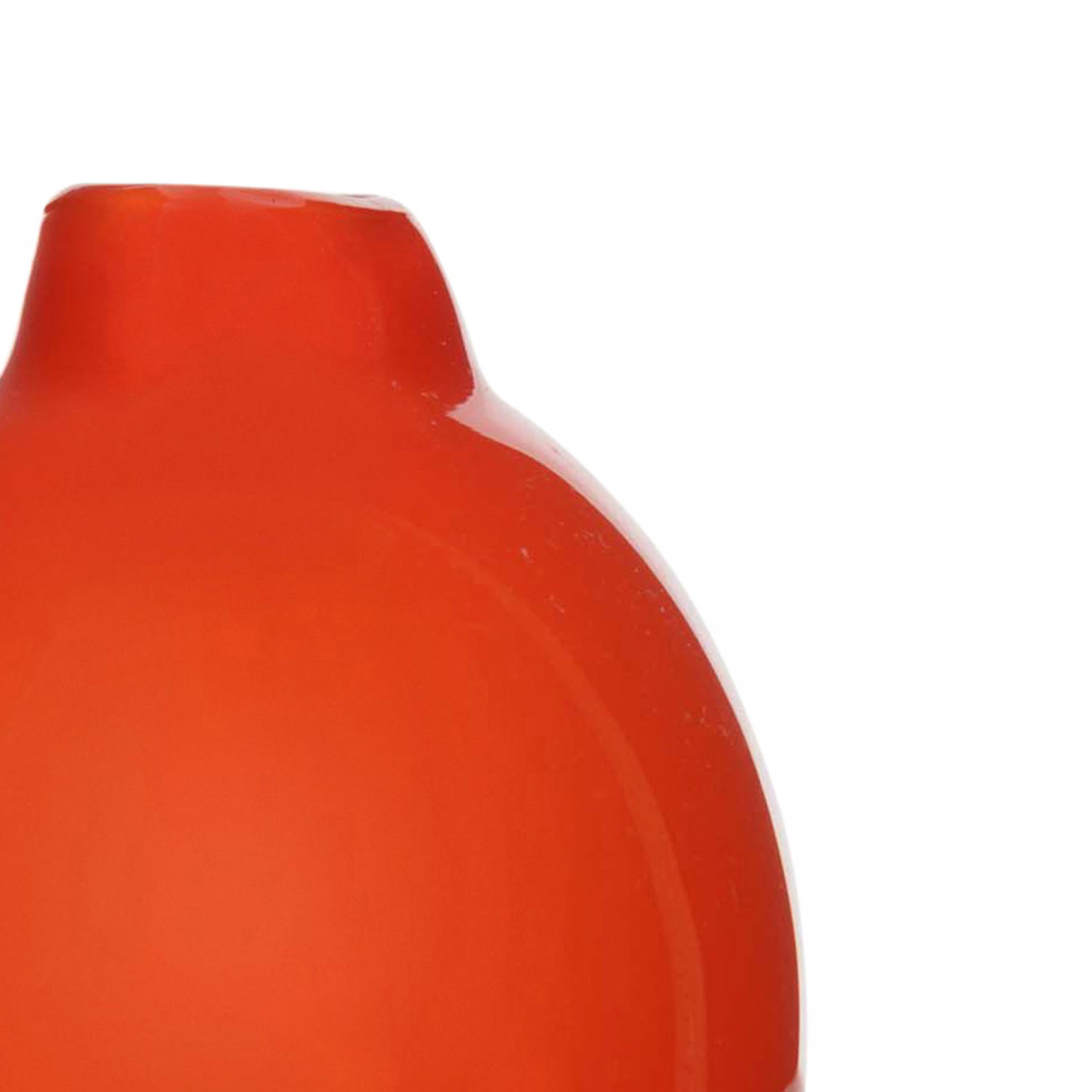 Scandinavian Mid-Century bulbous-shaped red and white case glass bud vase with a short neck