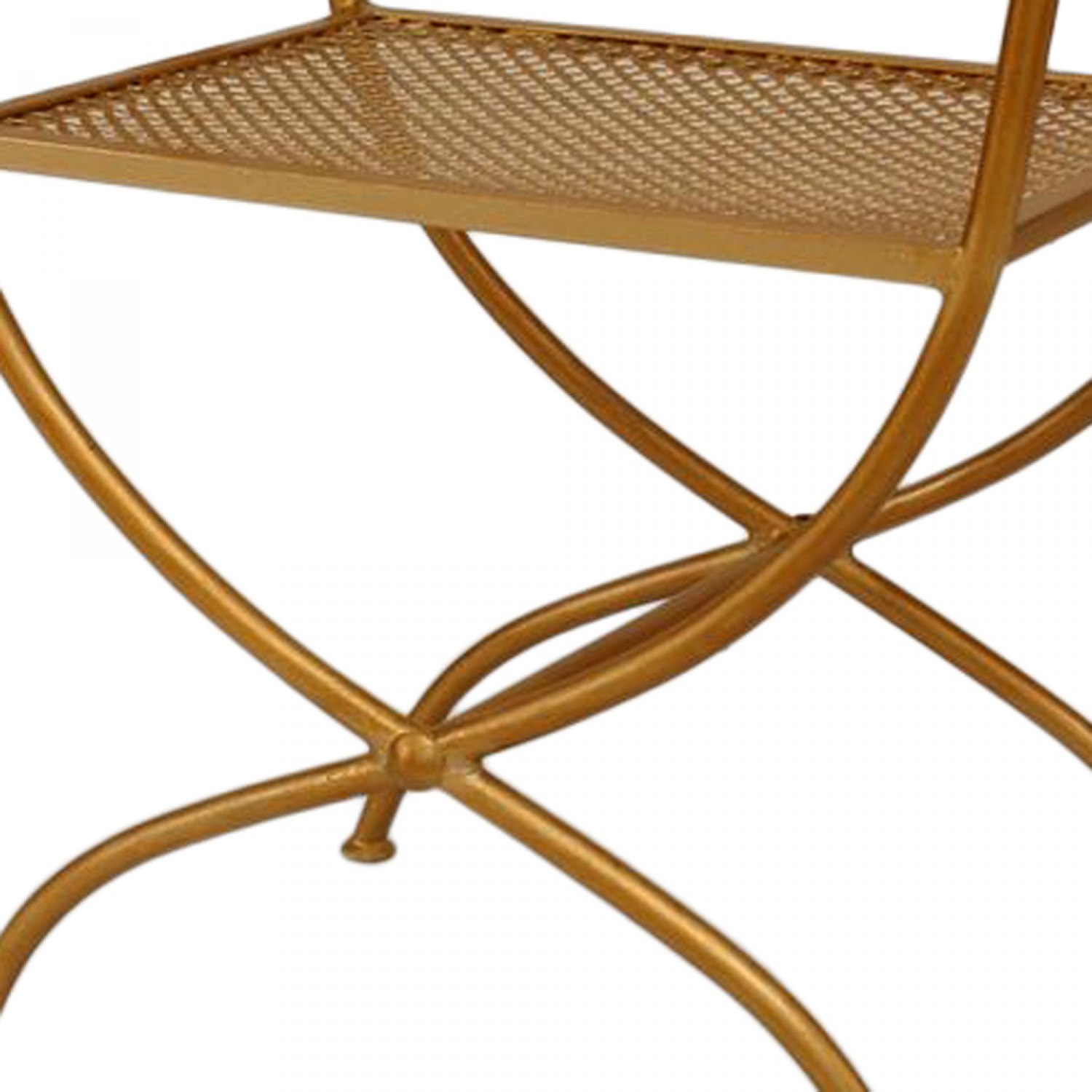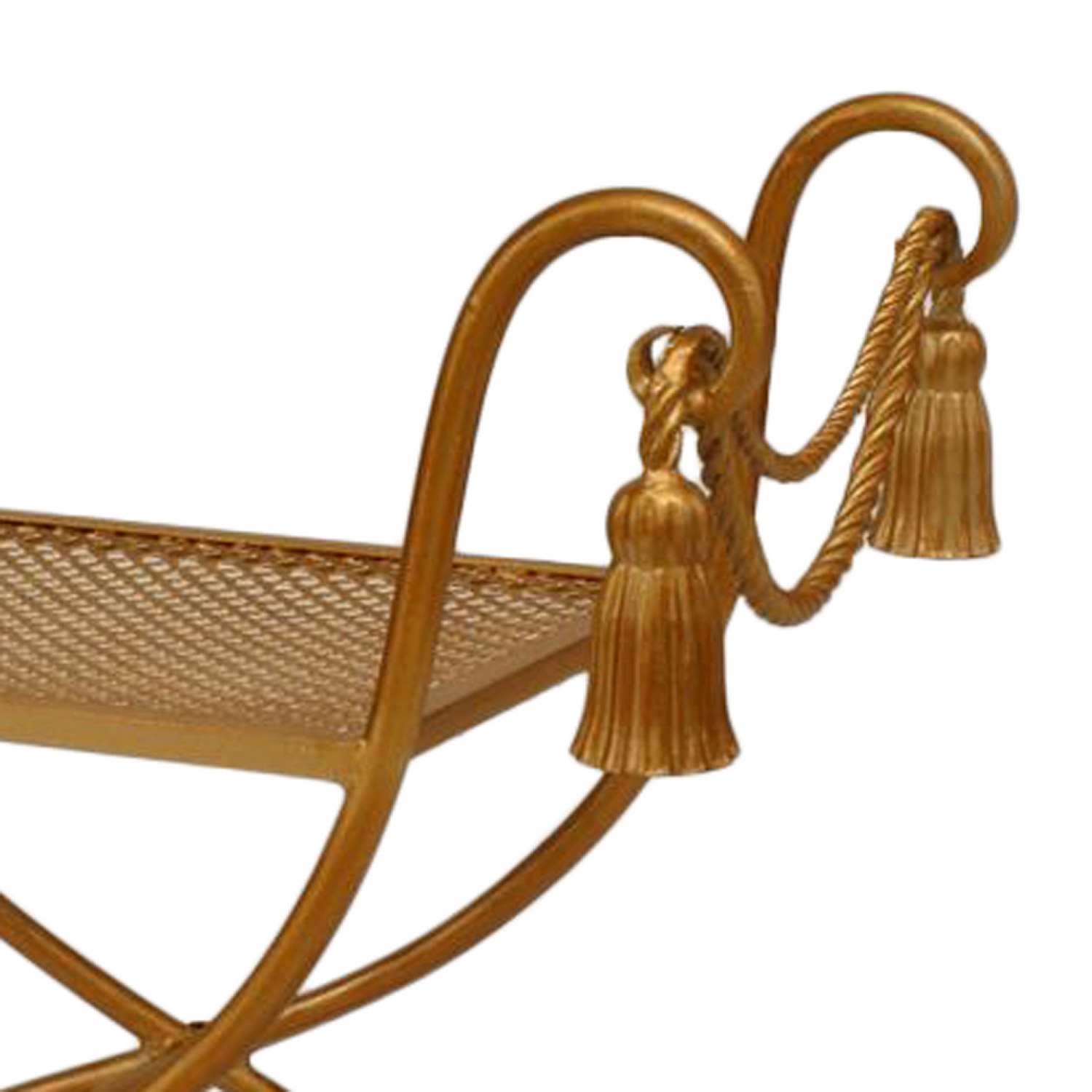 Italian 1940s gilt metal rope and tassel design bench with side arms and mesh seat