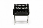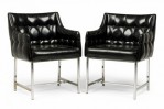 Set of 3 Carson American Mid-Century Button Tufted Black Vinyl and Chrome Armchairs