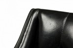 SET of 3 American Mid-Century game / armchairs with high sheen black vinyl button tufted upholstered seats with incorporated arms resting on silver metal square tube frames with stretcher bases. (CARSON)(PRICED AS SET)