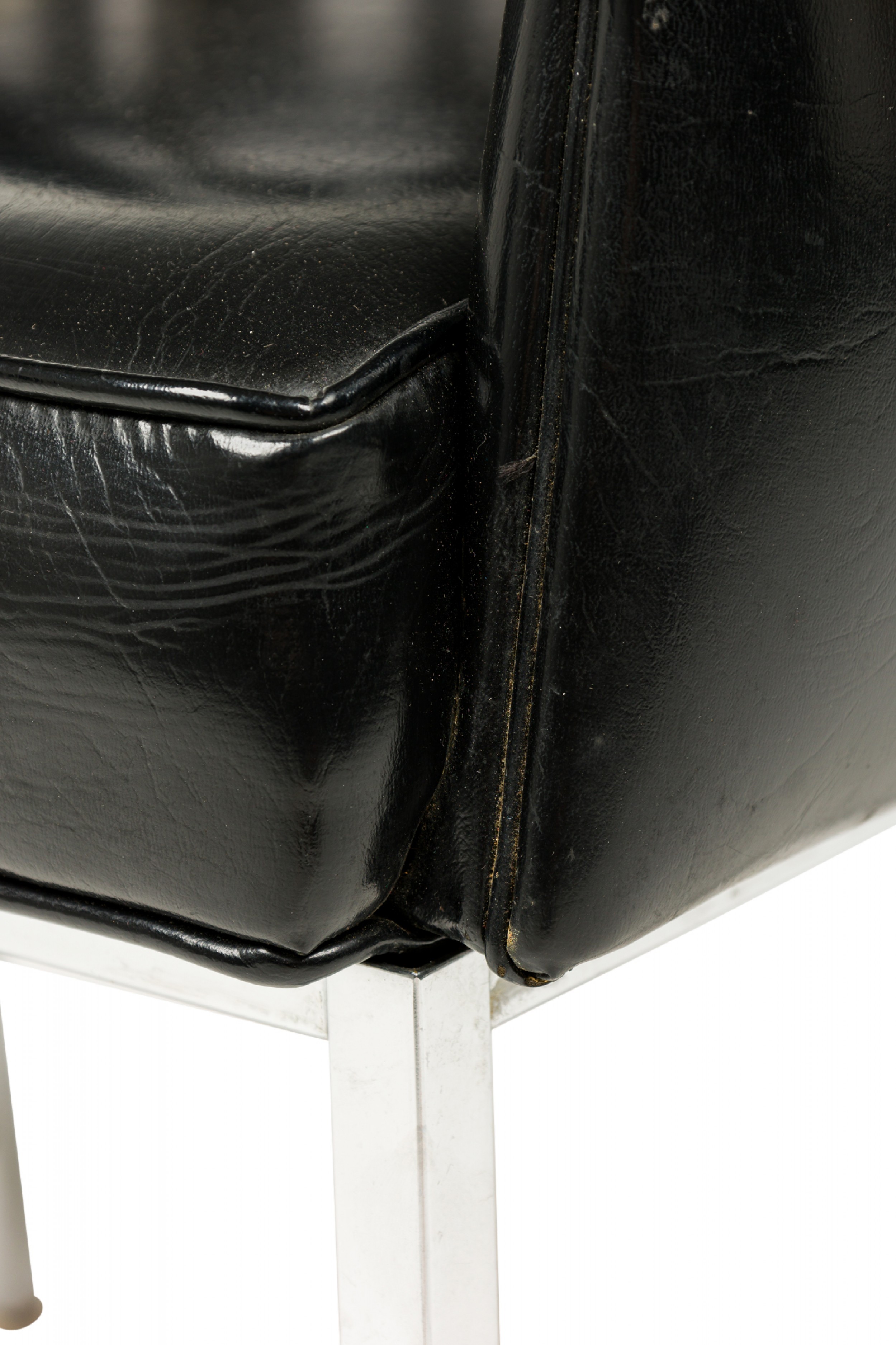 Style: Mid-Century Materials & Techniques: Chrome, metal, tufted, upholstered, vinyl Category: Seating Good; Wear consistent with age and use