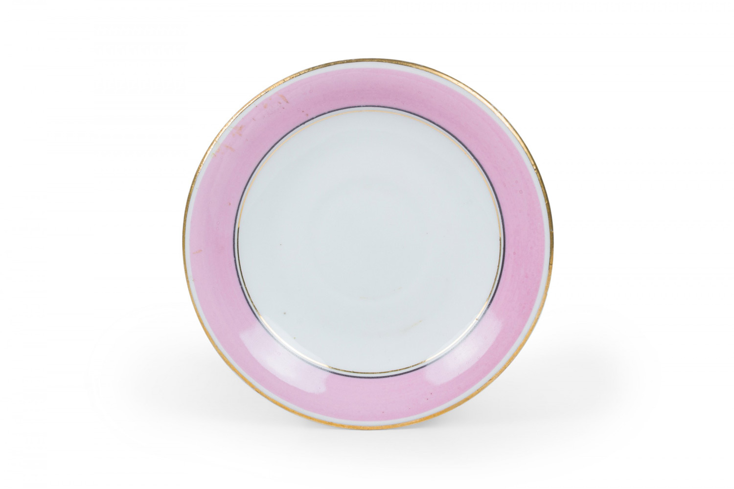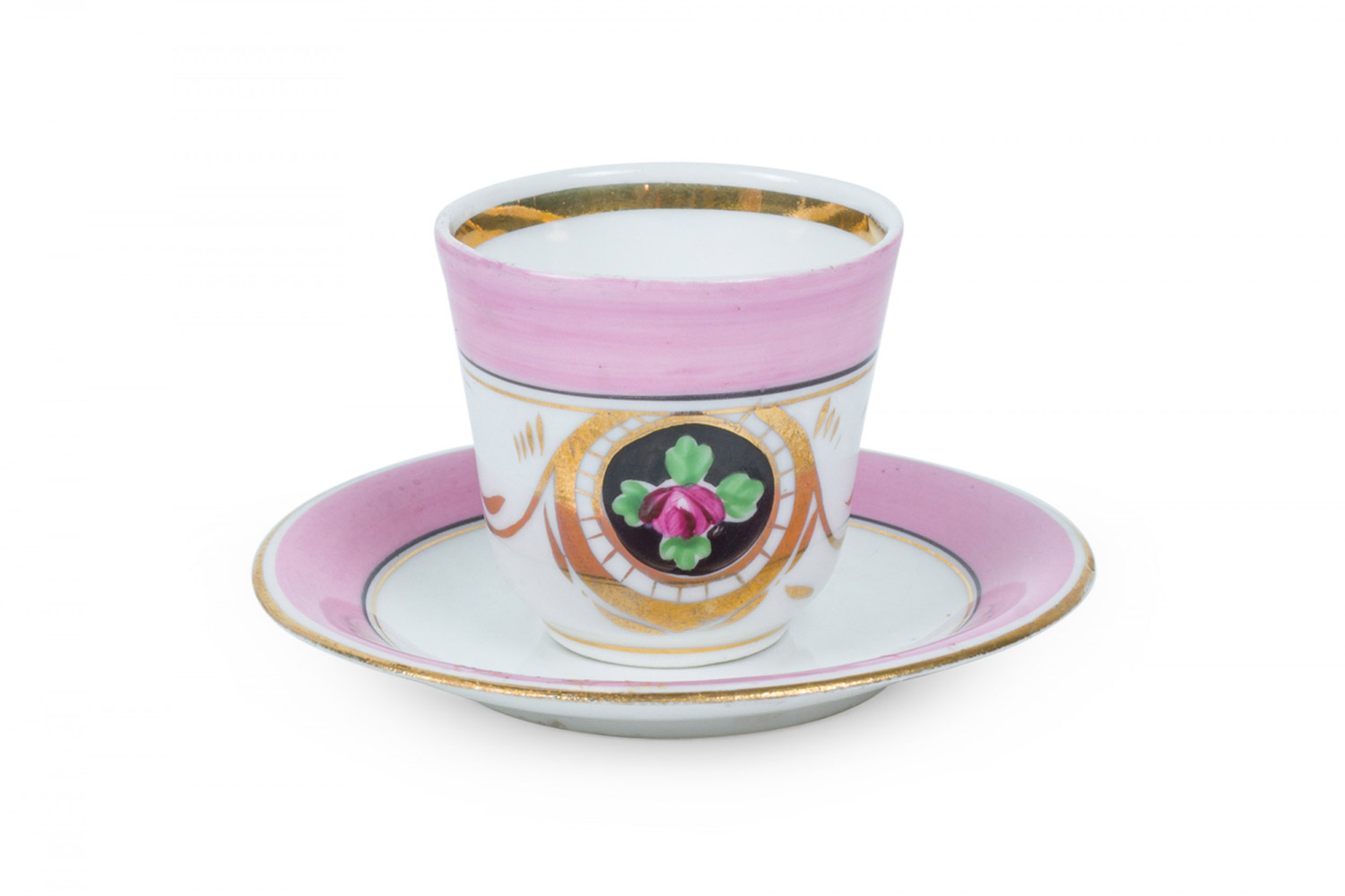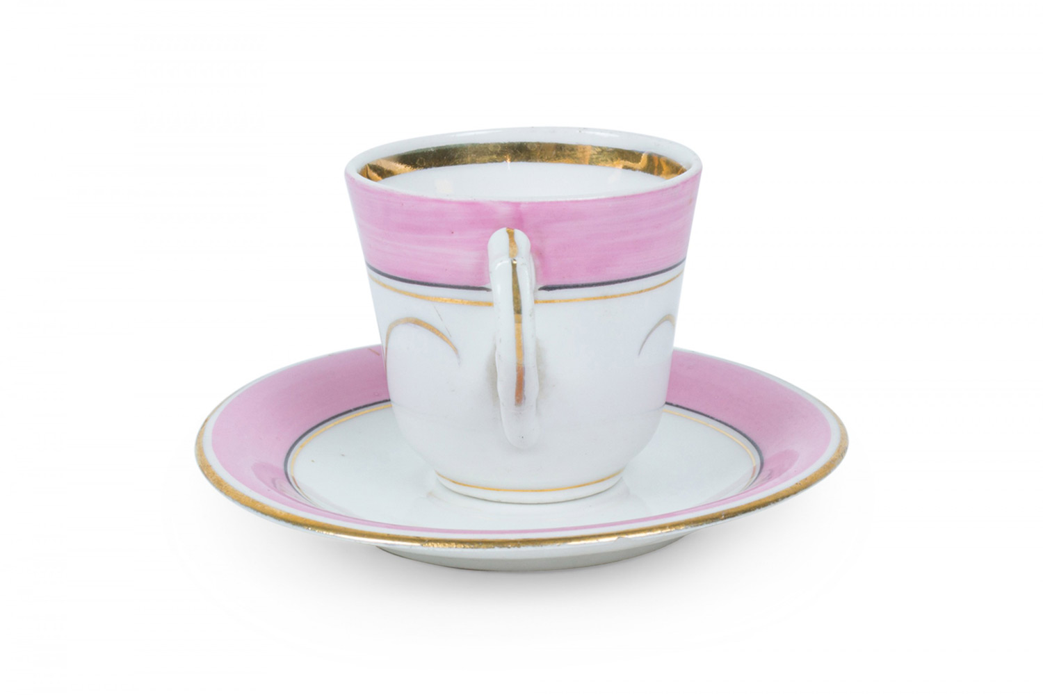 Set of 3 French Victorian Pink Porcelain Teacups and Saucers