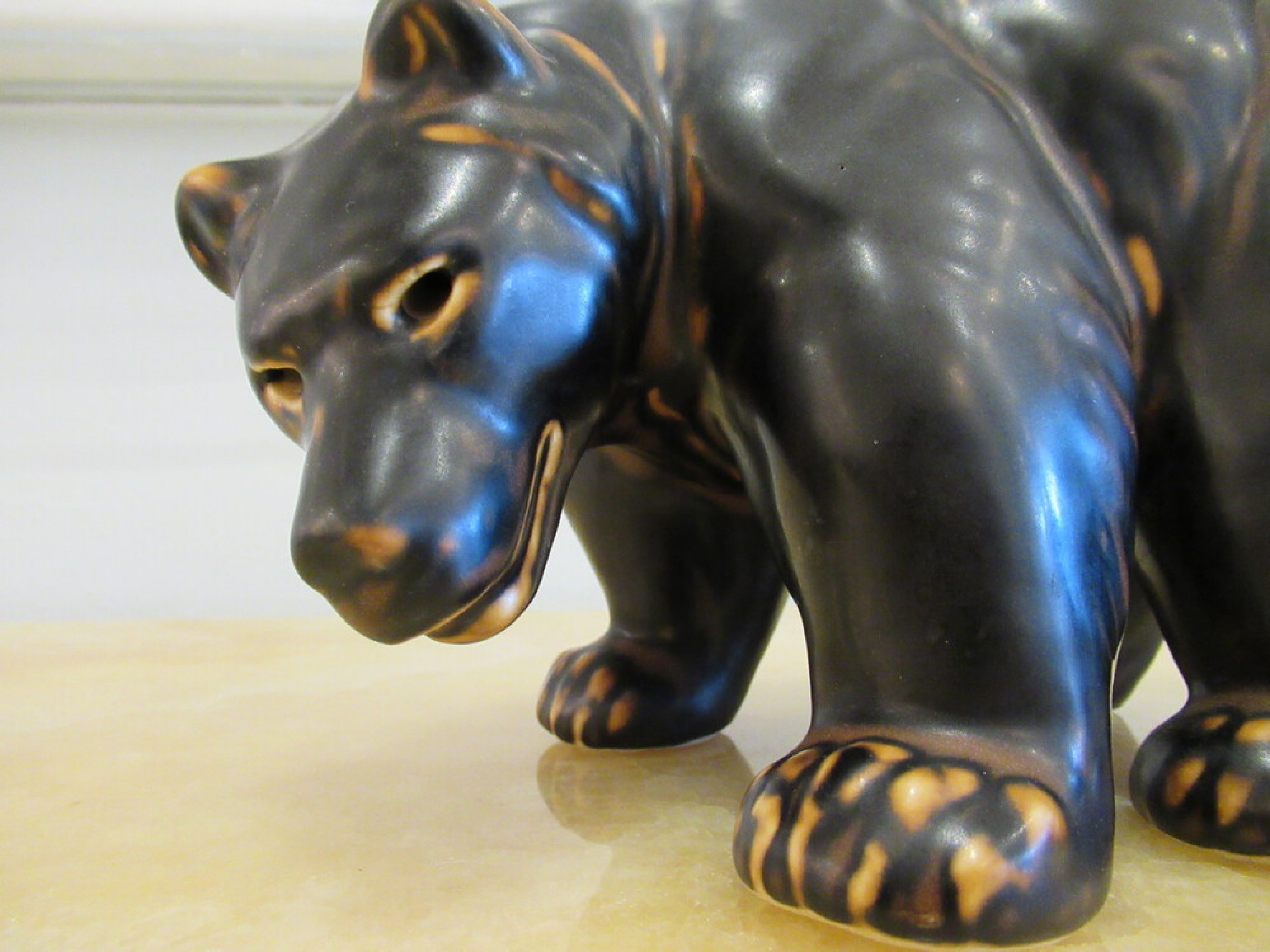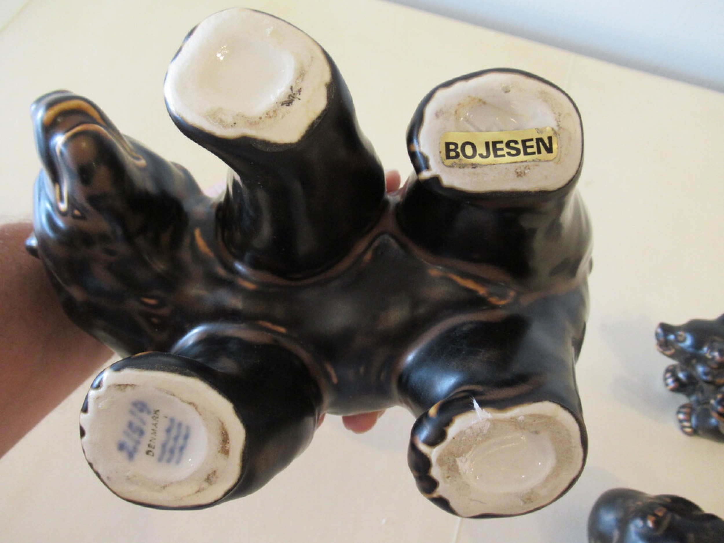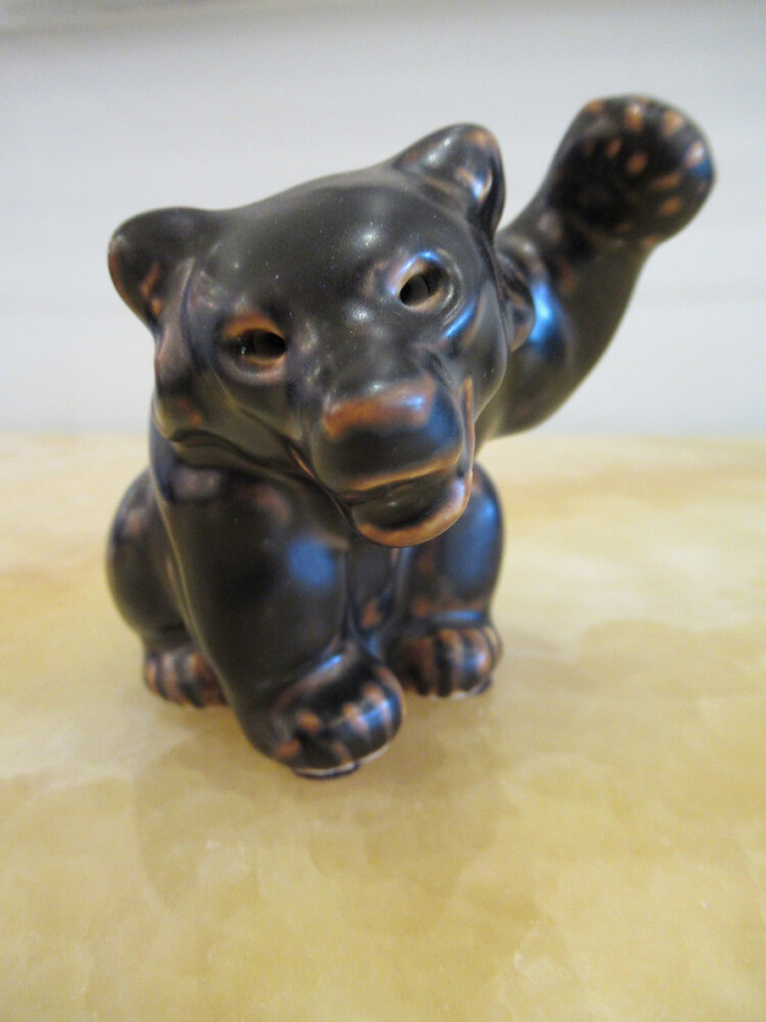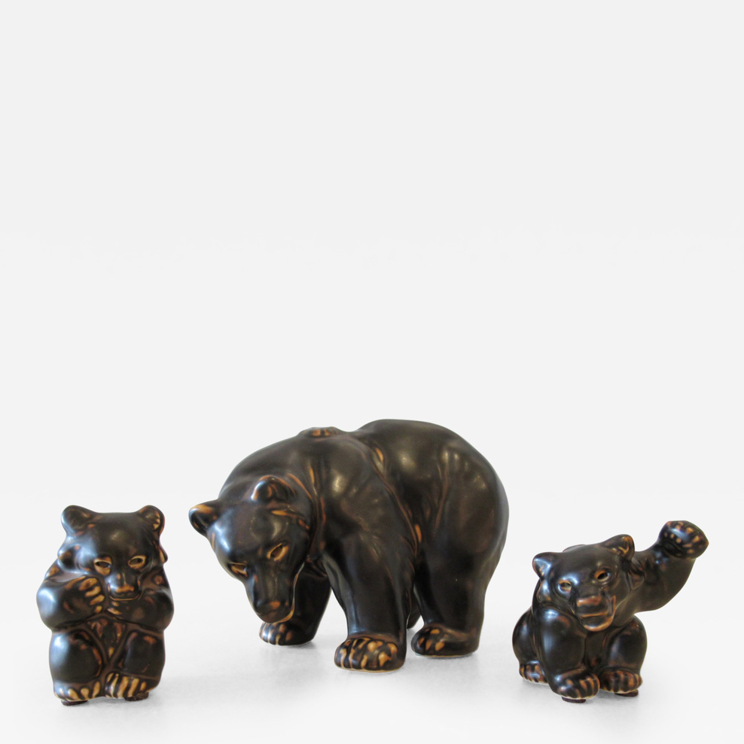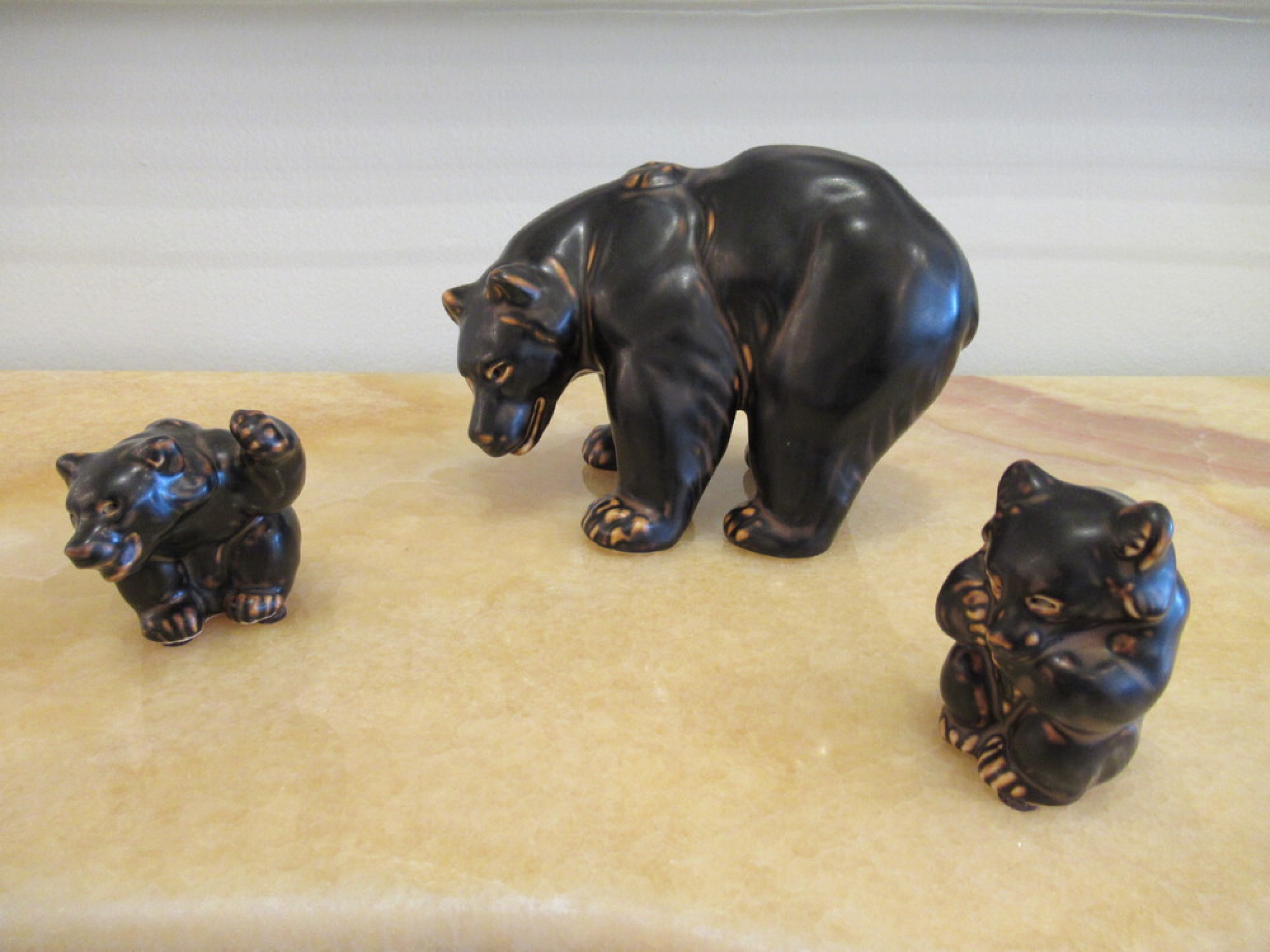 3 Danish Mid-Century black porcelain grouping of a mother bear and her two cubs (Royal Copenhagen).