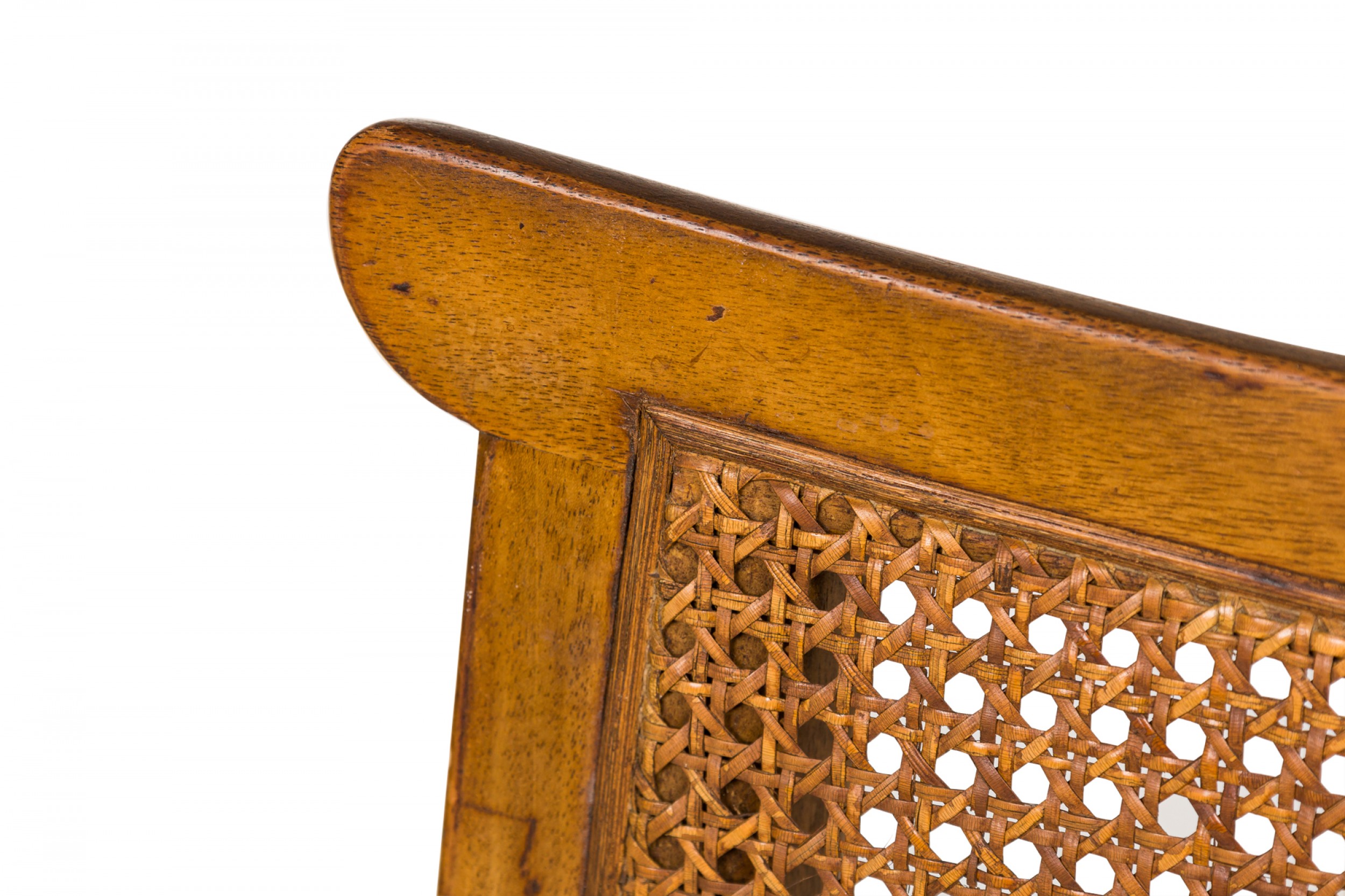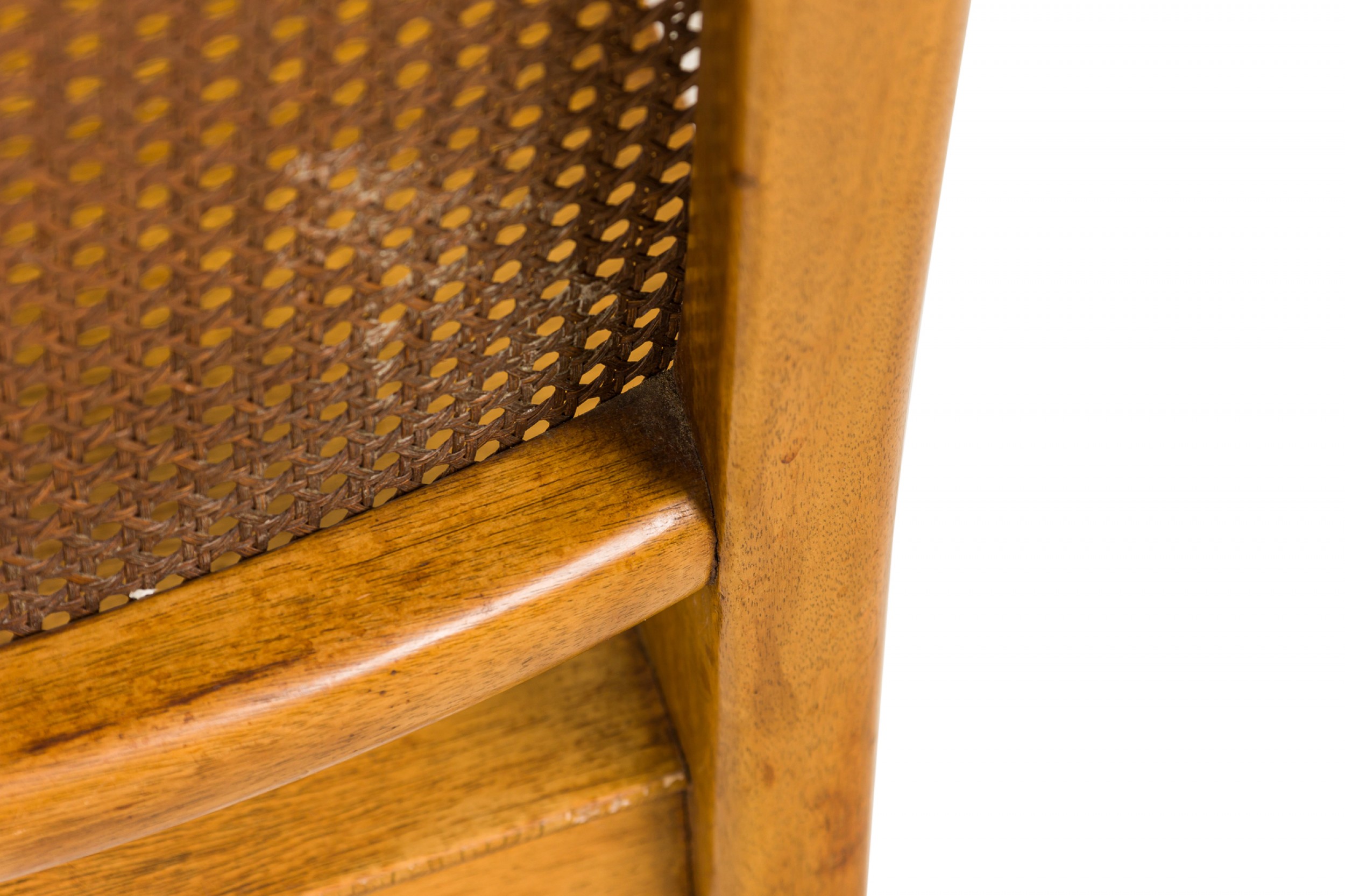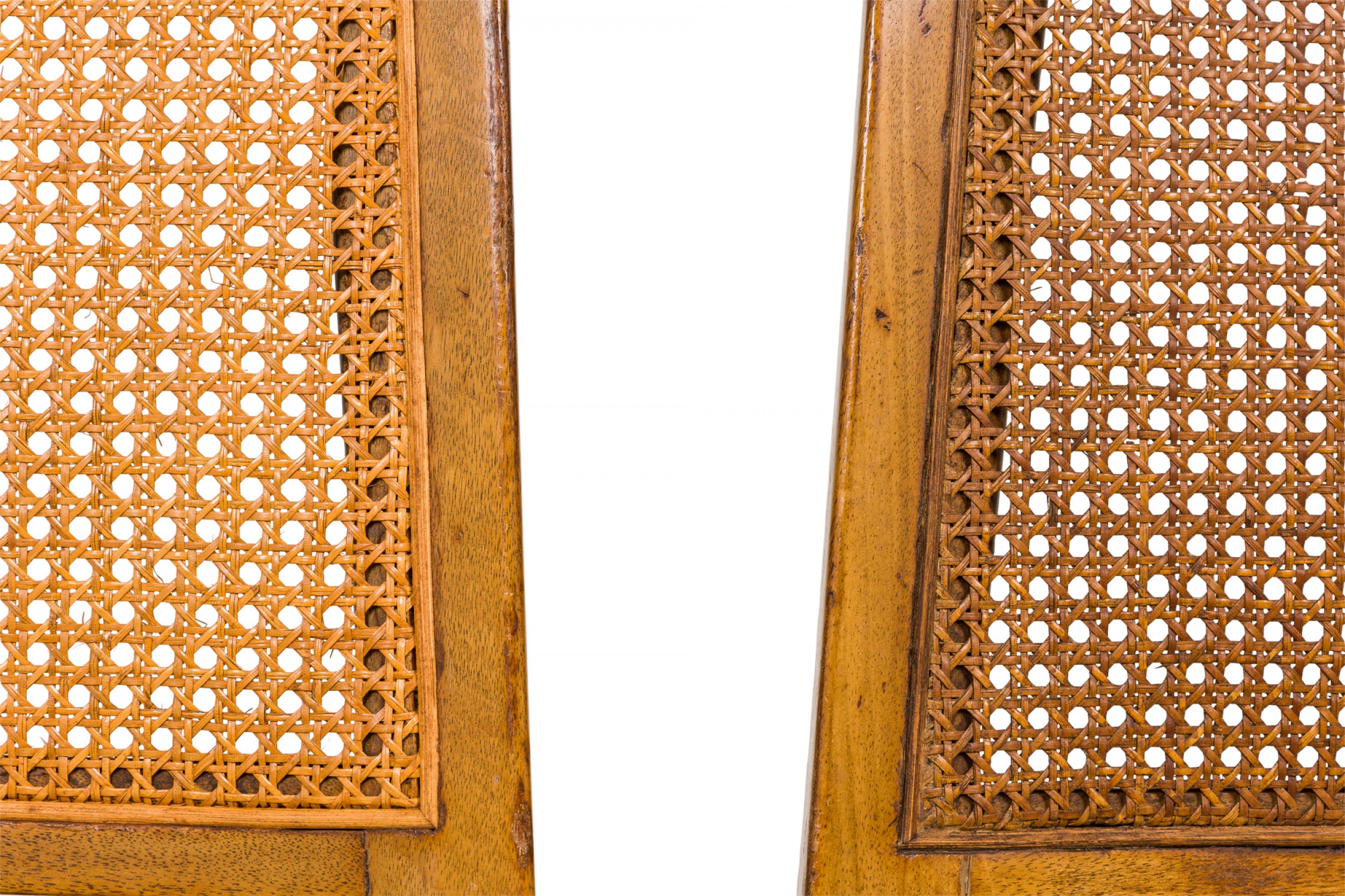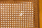 Style: Mid-Century Materials & Techniques: Caning, wood Category: Seating Condition: Discoloration and wear to finish, minor caning damage on one chair. Good; Wear consistent with age and use