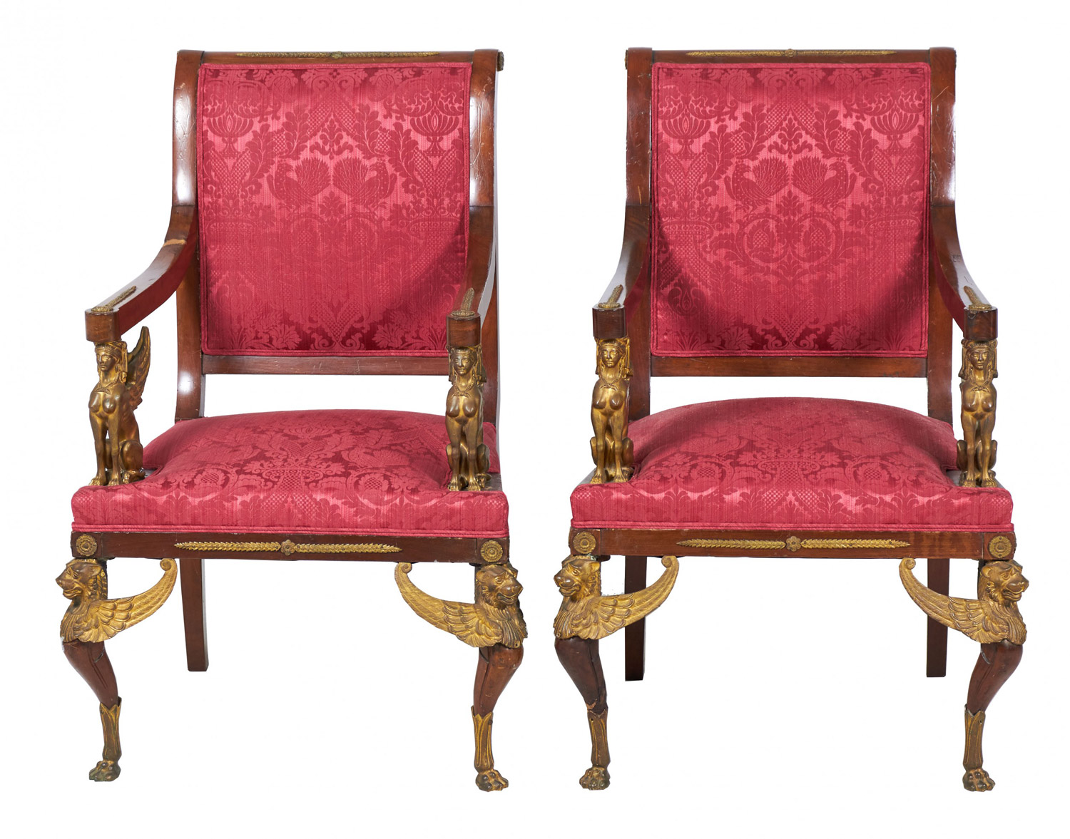 Style: French Materials & Techniques: Metal, upholstered, wood, bronze, mahogany Category: Seating