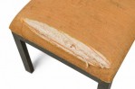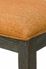 Style: Mid-Century Materials & Techniques: Carved, cerused, fabric, upholstered, wood Category: Seating Condition: Rips and wear to upholstery. Good; Wear consistent with age and use