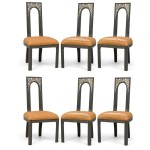Set of 6 James Mont Mid-Century American Modern Cerused and Silver Gilt Dining Side Chairs