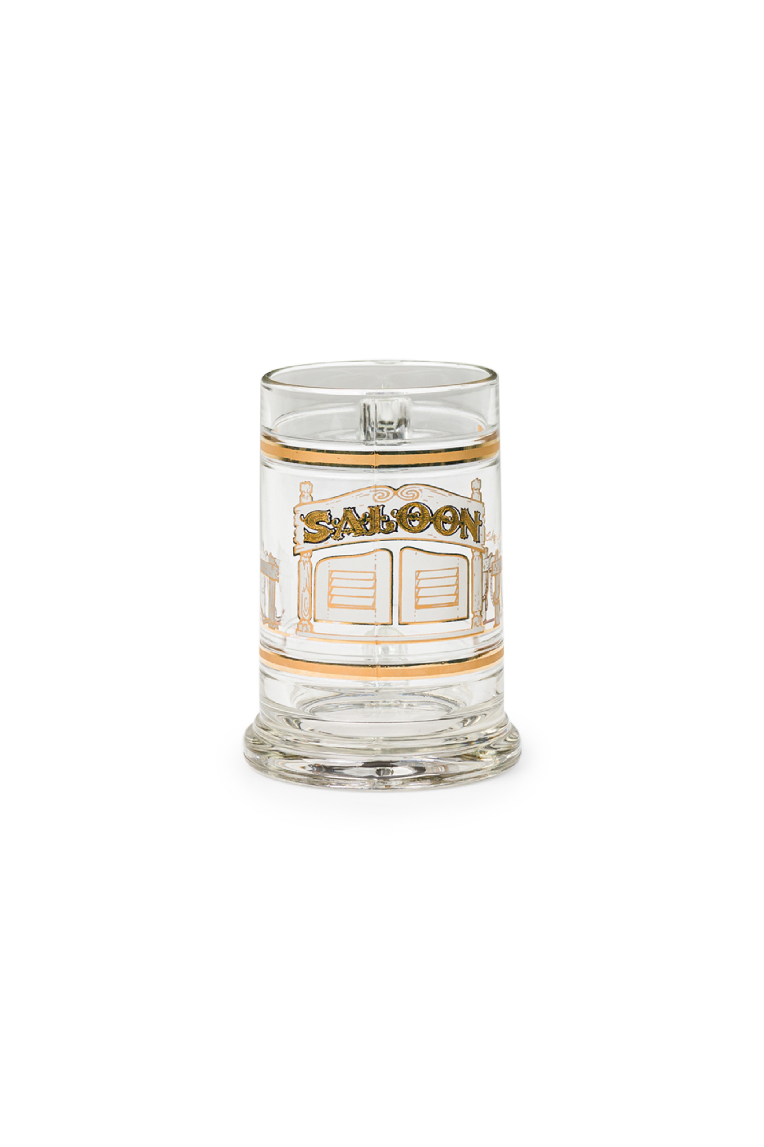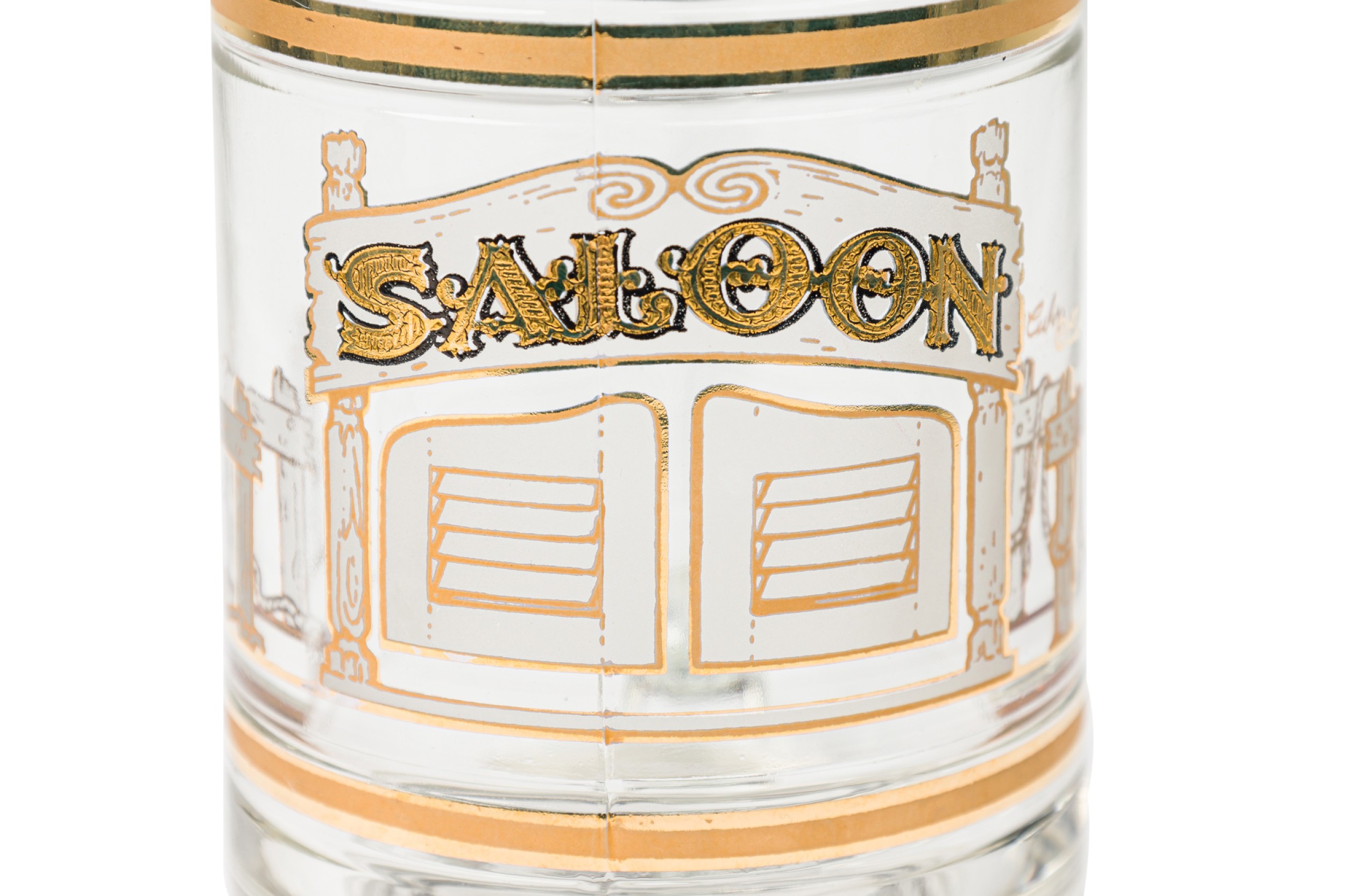 SET of American Mid-Century glass beer mugs with 2 gold trims and decorated with saloon doors (signed: CULVER LTD) (PRICED AS SET).
