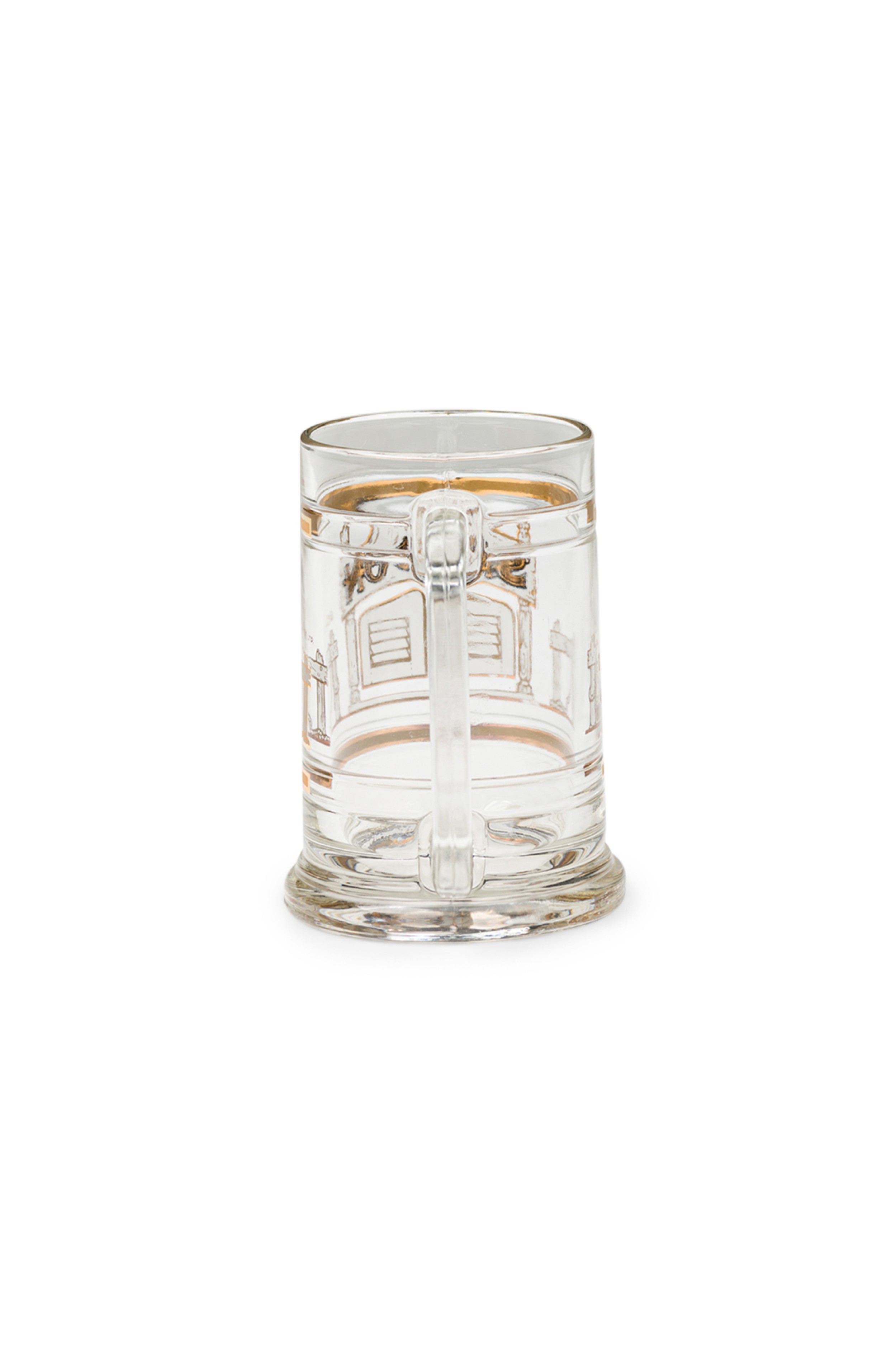 Set of 8 American Mid-Century Glass Beer Mugs with Gold Trim