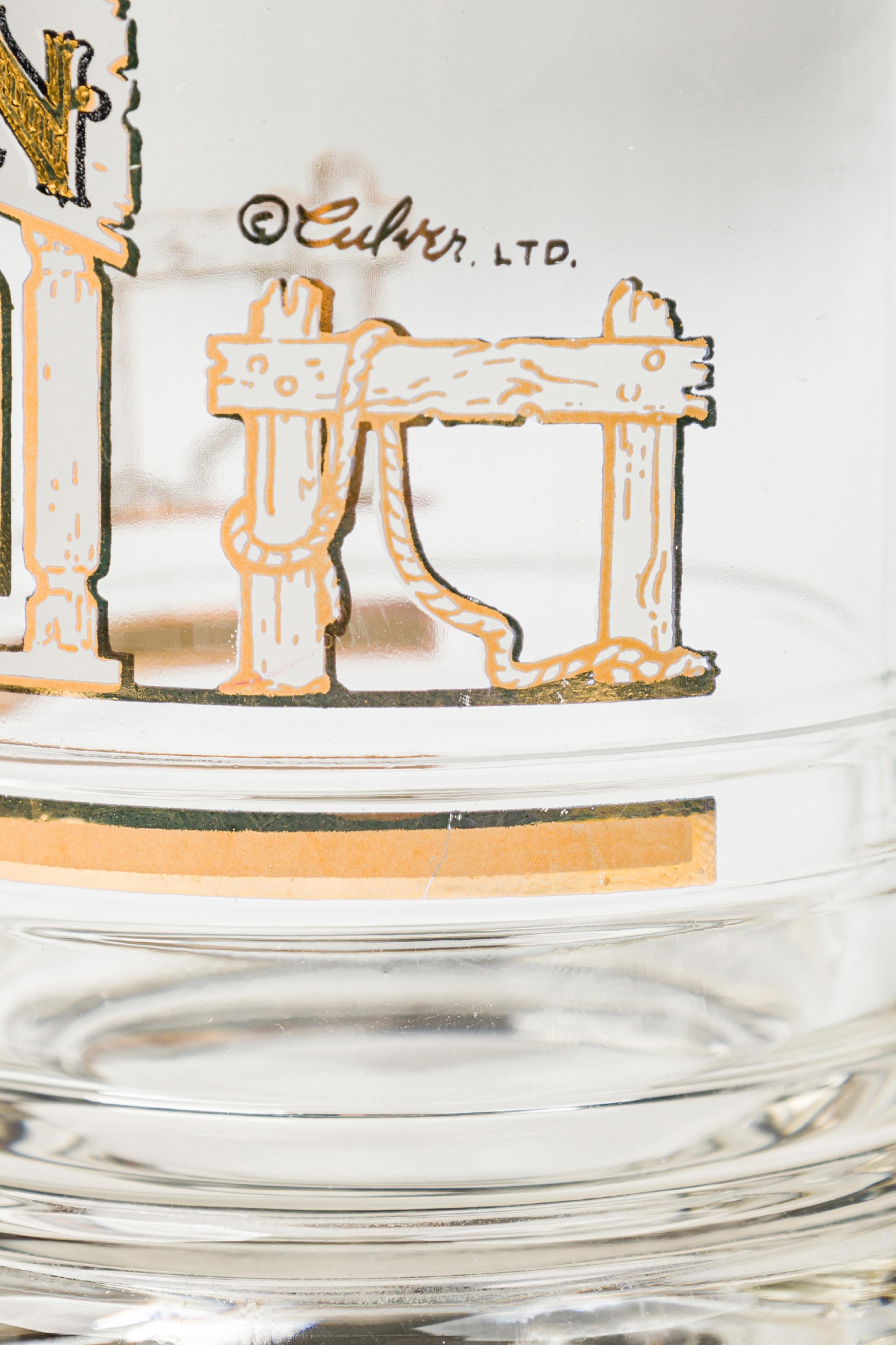 SET of American Mid-Century glass beer mugs with 2 gold trims and decorated with saloon doors (signed: CULVER LTD) (PRICED AS SET)