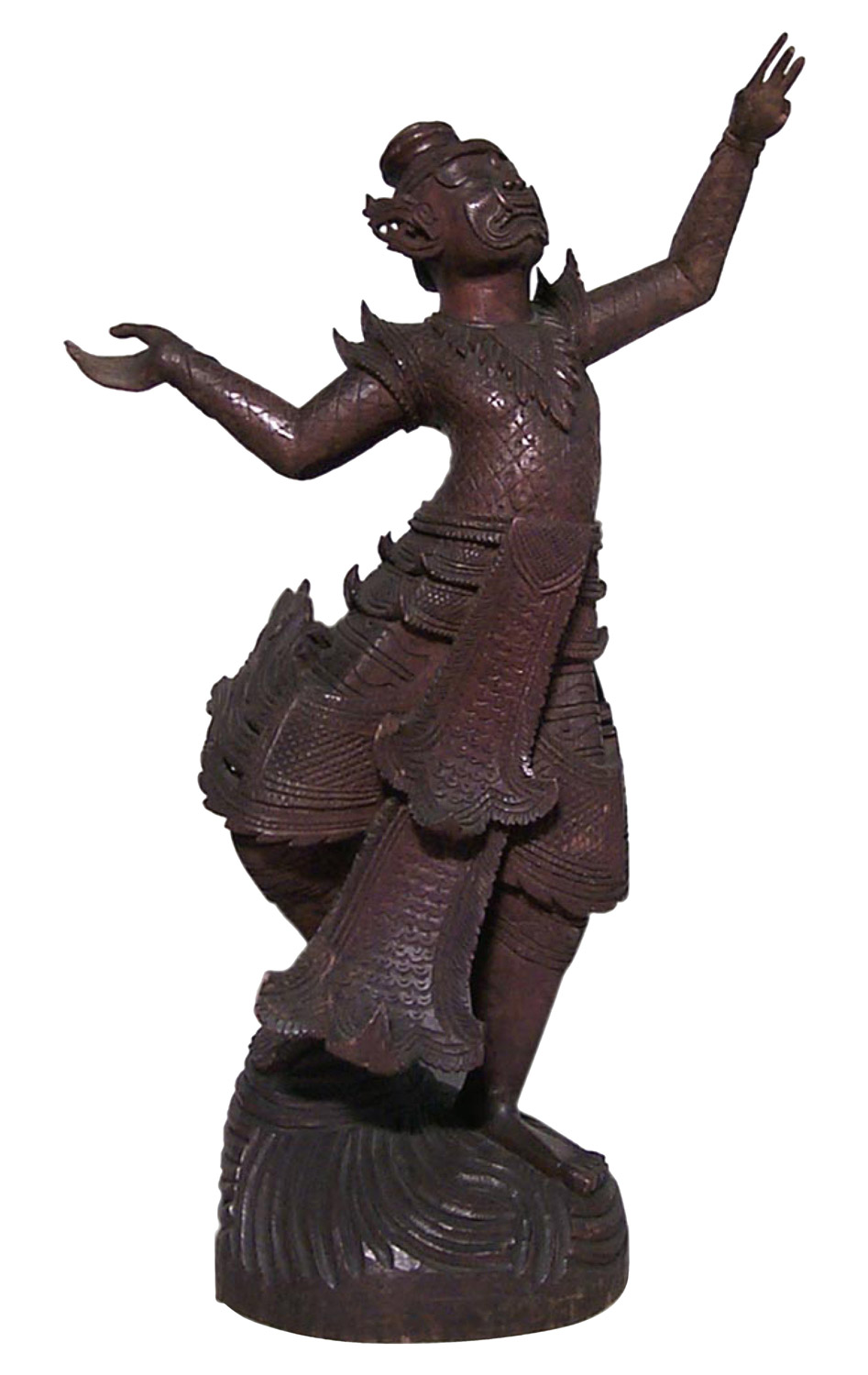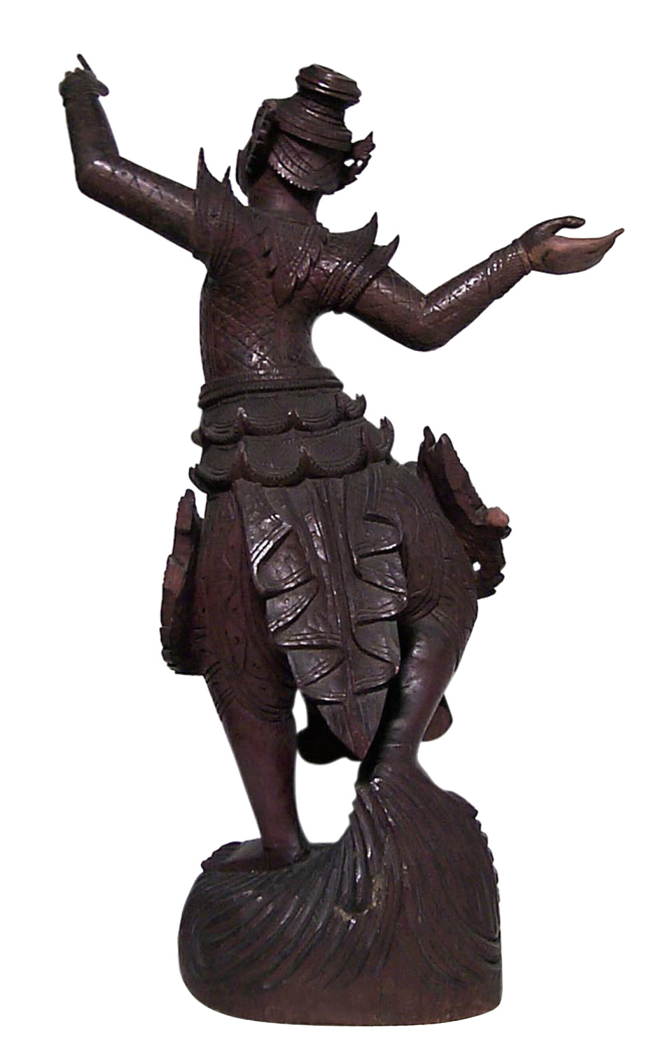 Asian Siamese (19/20th Cent) carved walnut dancing figure with raised hands on scalloped base