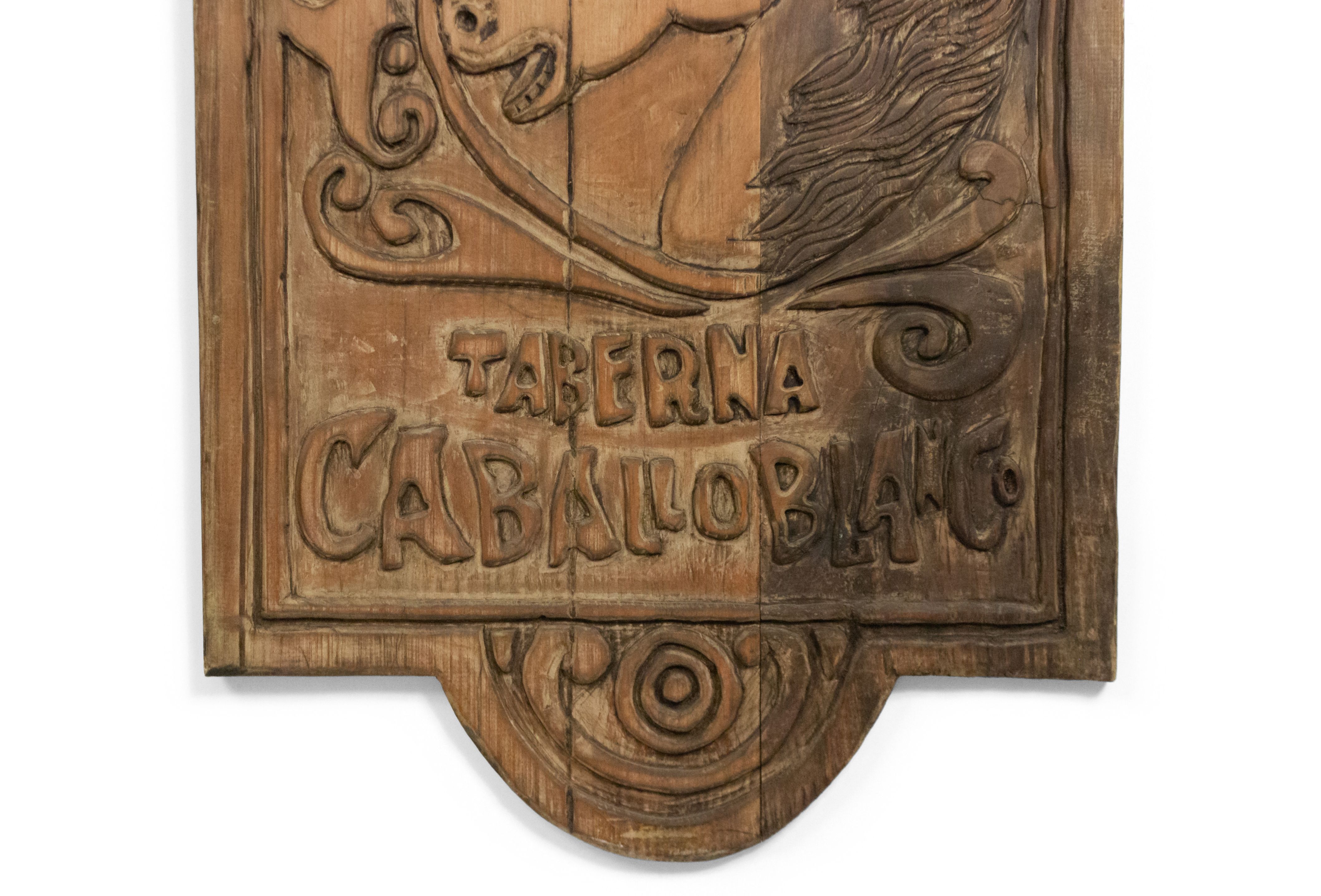 Spanish Provincial (20th Cent) style painted and carved horse head wall plaque/sign (La Taberna Caballoblanco) (Related item: 049724D)..