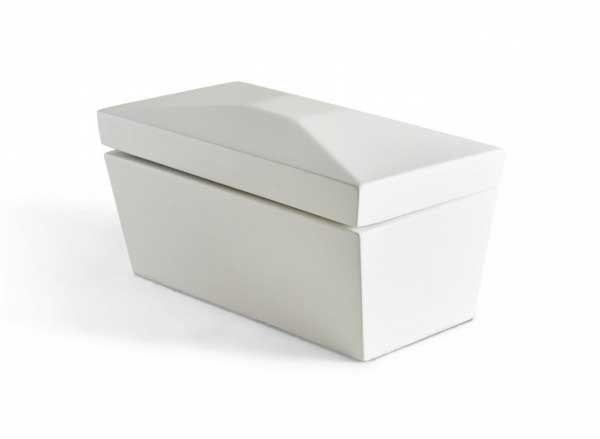 Square light gray lacquered wood box with a dark gray trim and a lift-off cover.