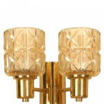 Pair of Hans Agne Jakobsen Swedish Mid-Century Brass and Glass Wall Sconces