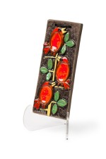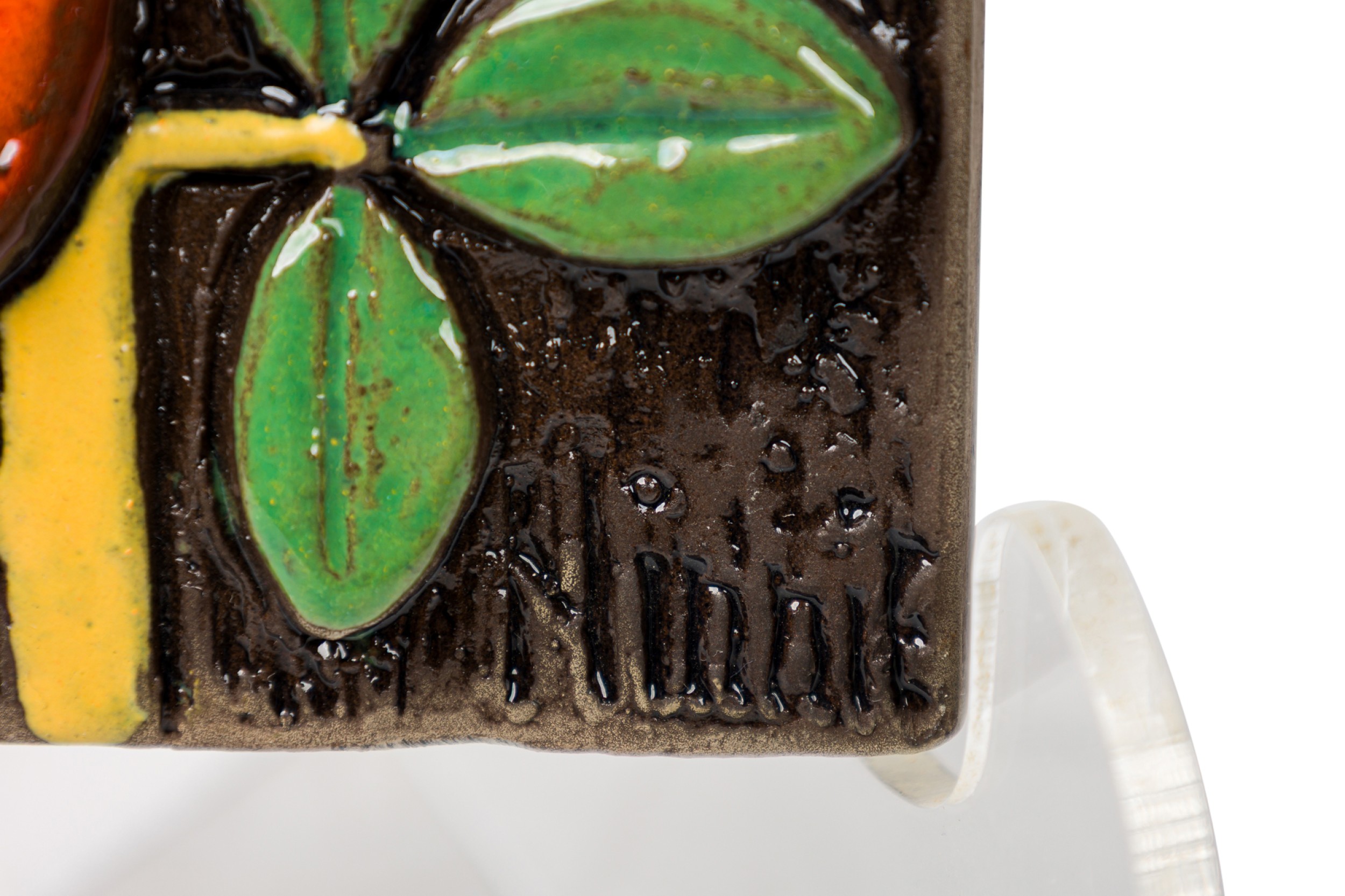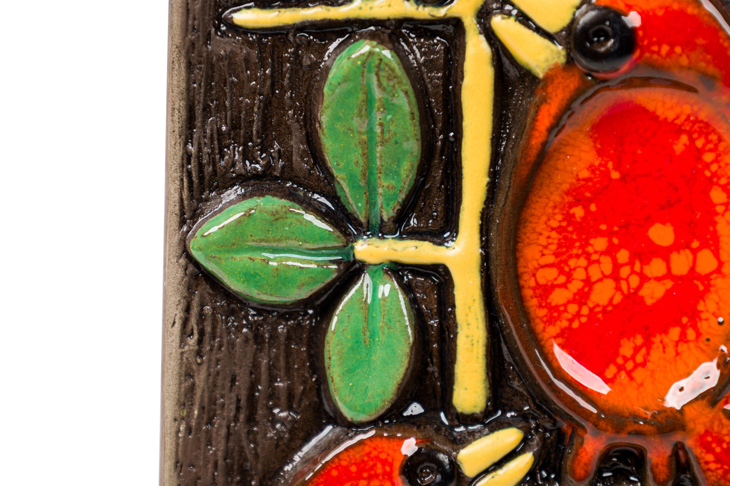 Swedish Mid-Century wall plaque with abstract three red birds on yellow branches relief motifs (NINNIE FORSGREN for, BROMMA KERAMIK)